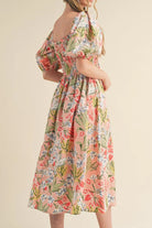 Floral Smocked Square Neck Puff Short Sleeve Midi Dress