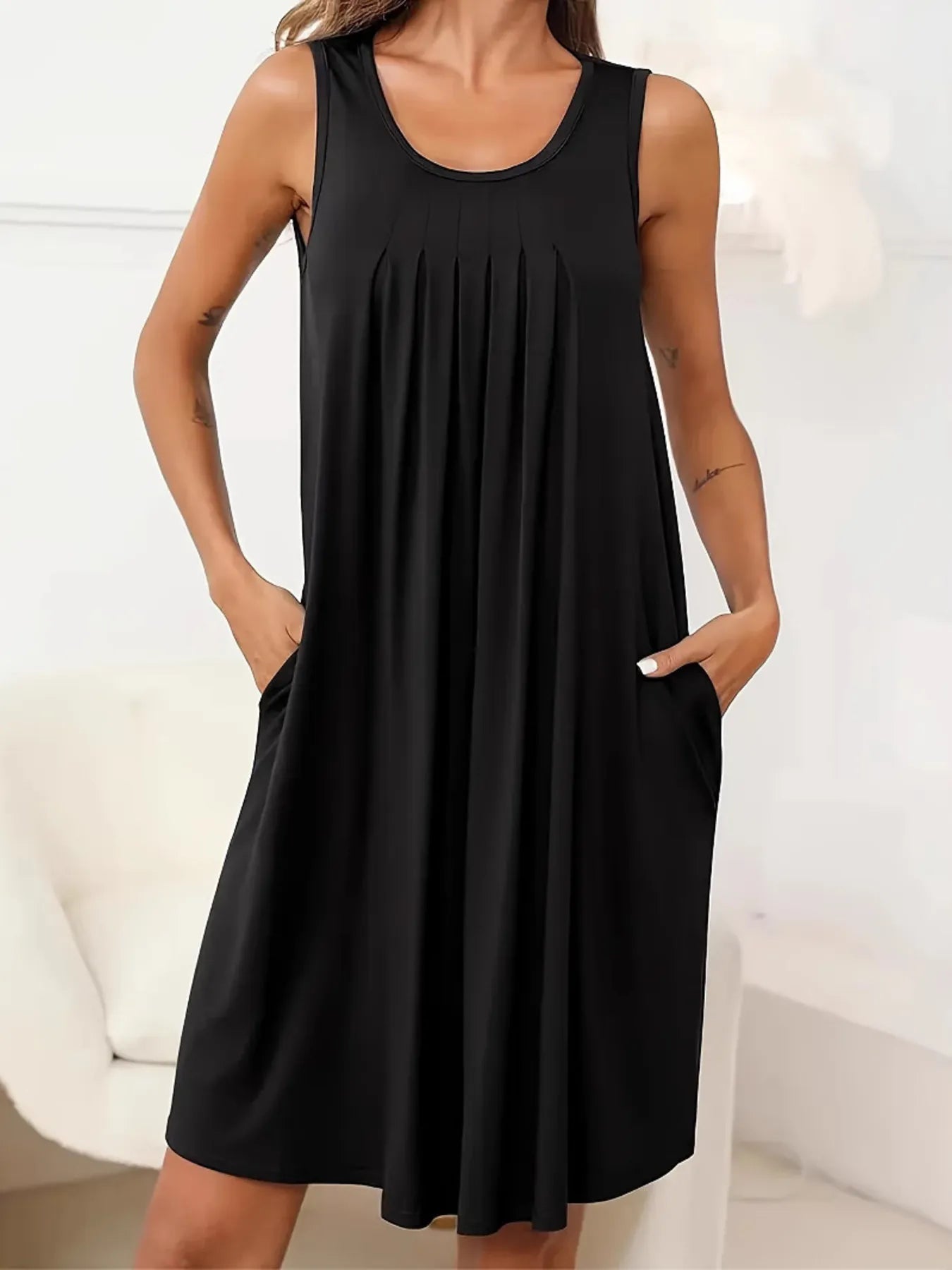 Flowy Pleated Tank Dress with Pockets