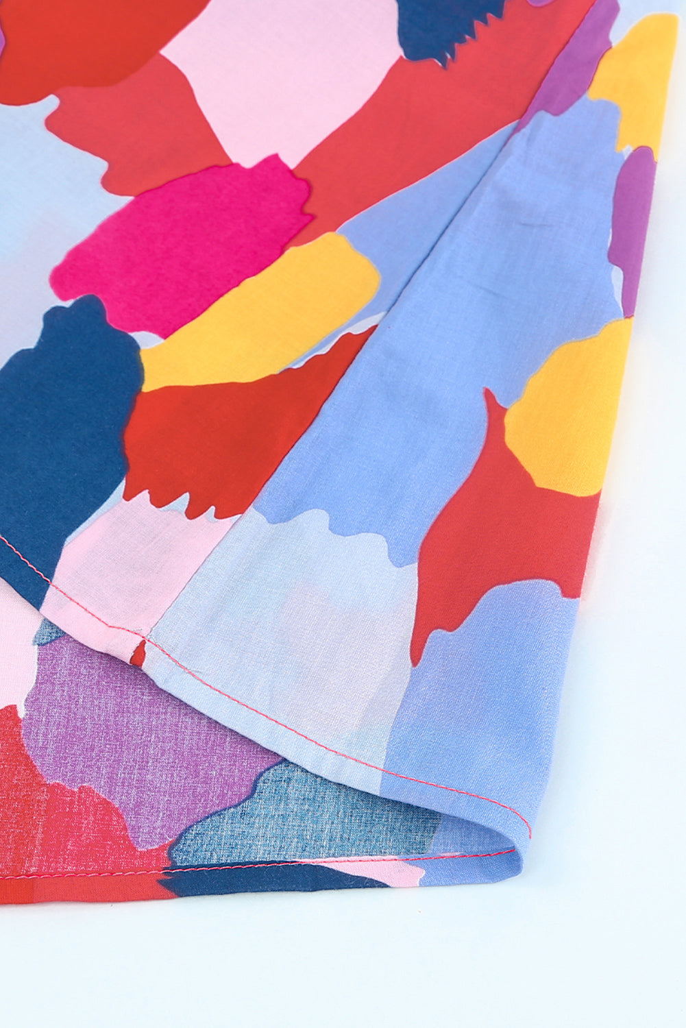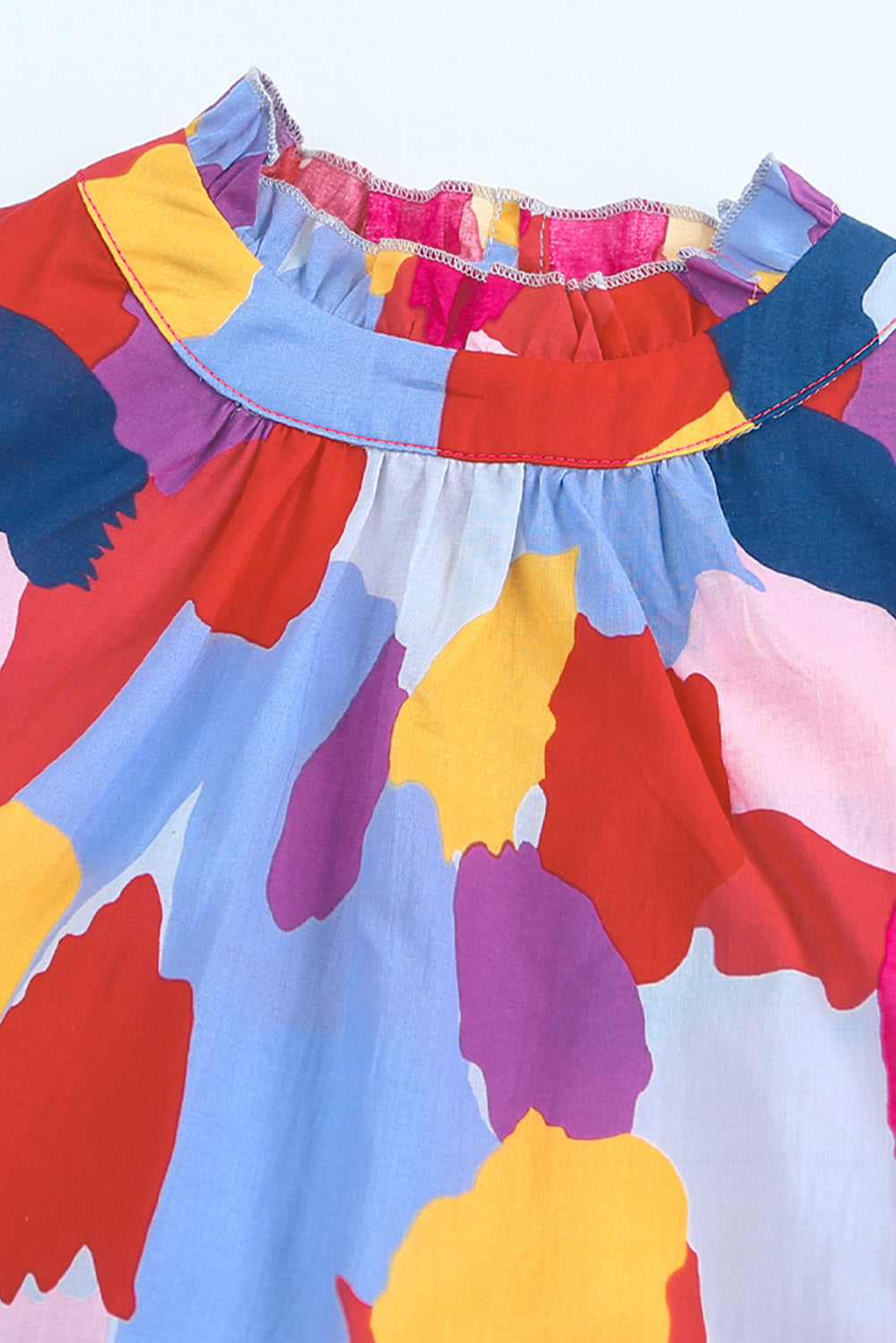 Frill Printed Mock Neck Cap Sleeve Blouse