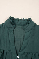 Frilled Notched Ruffled Cap Sleeve Blouse