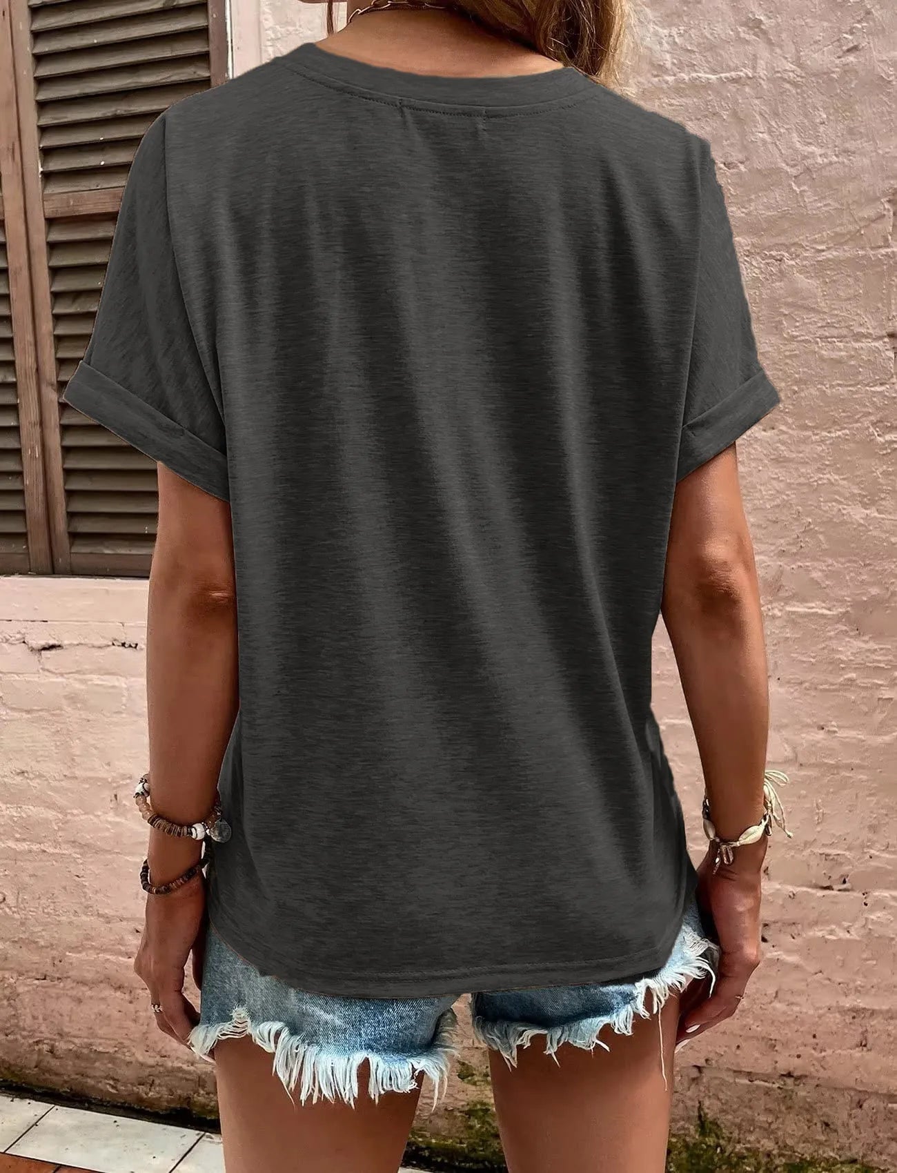 Full Size Casual Notched Short Sleeve Blouse Plus Size
