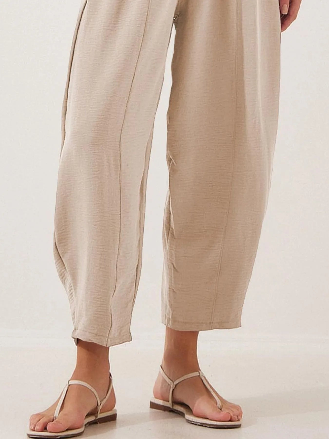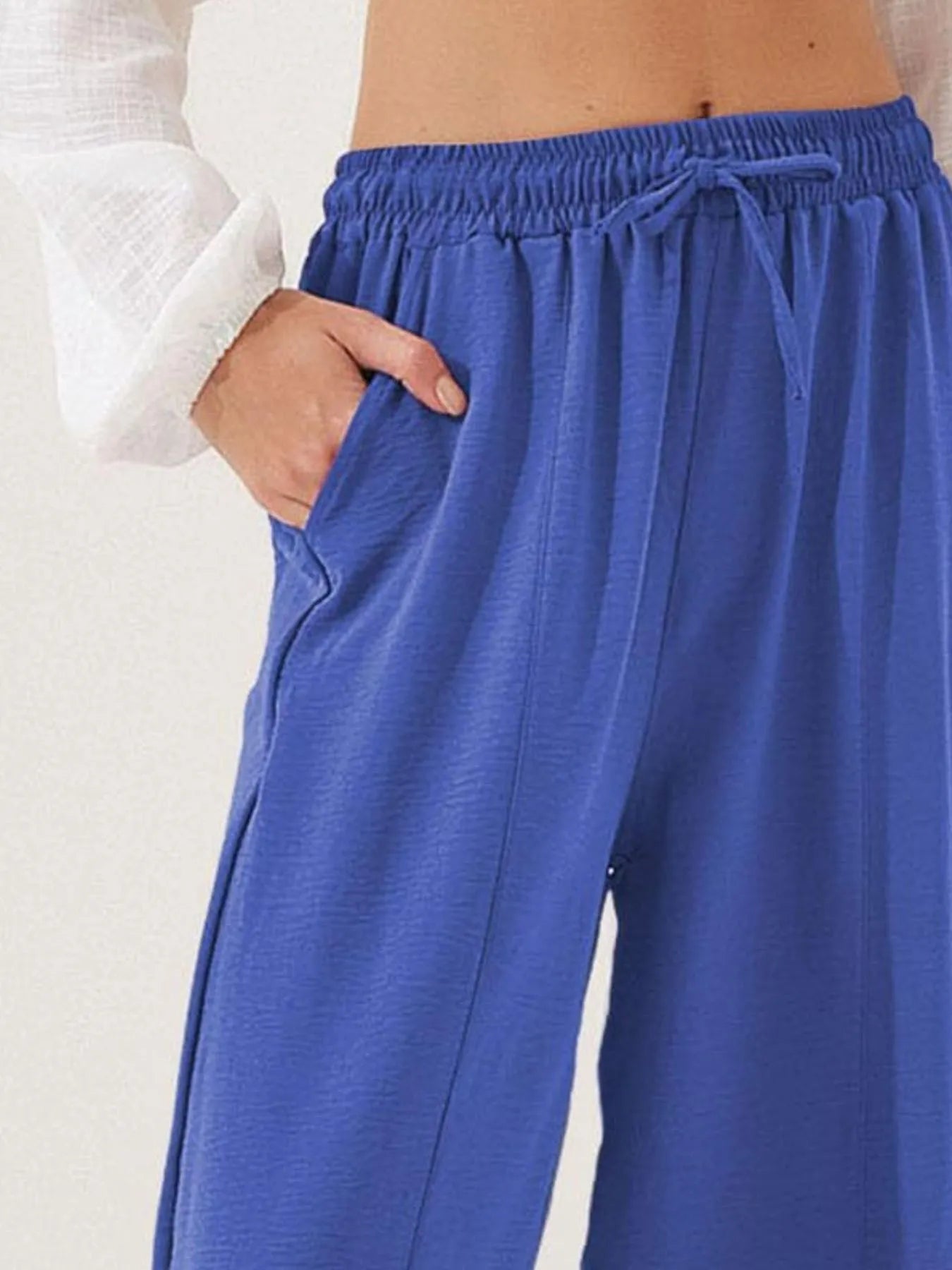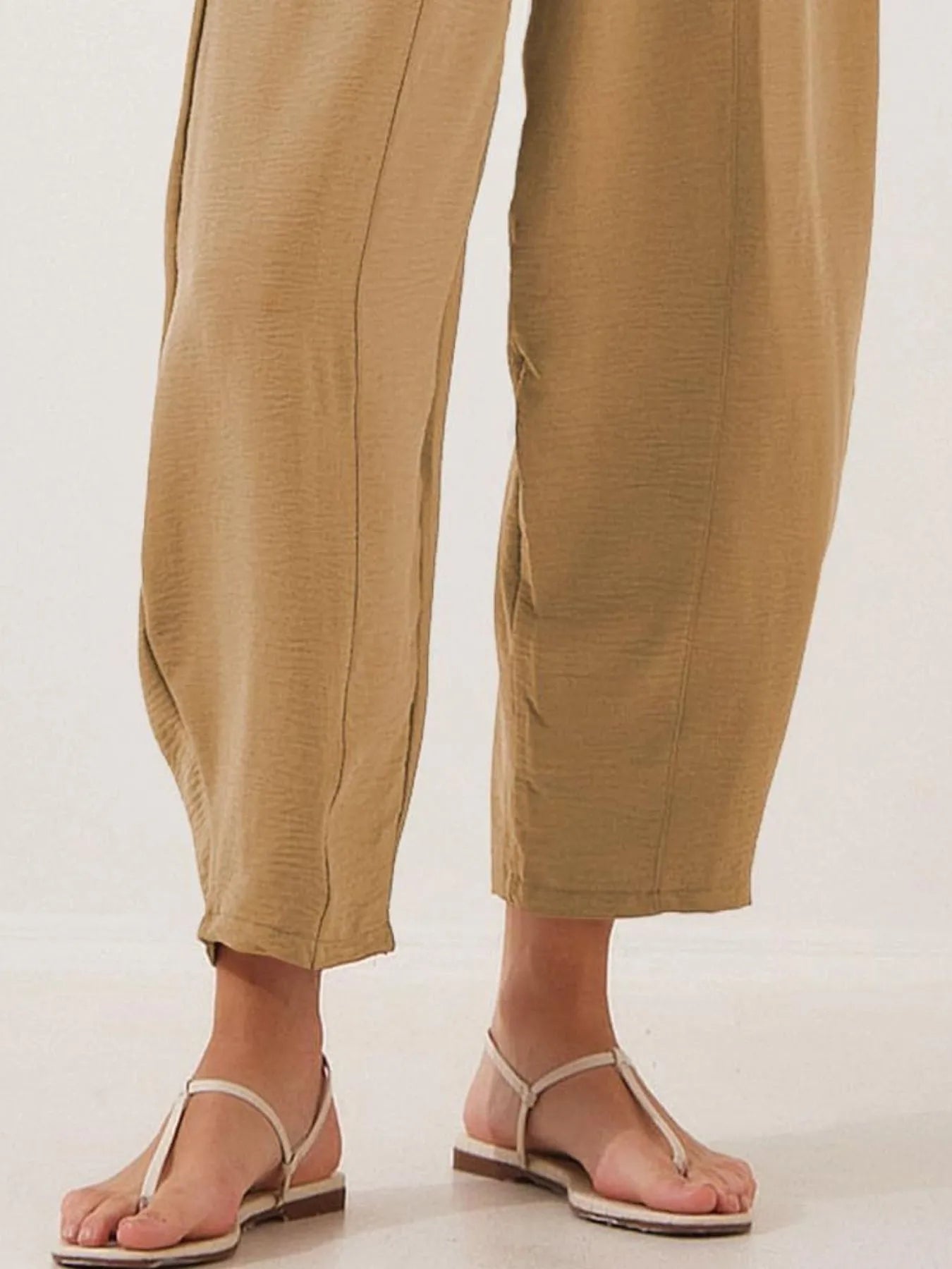 Full Size Drawstring Wide Leg Cropped Pants Plus Size