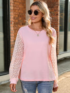 Full Size Round Neck Lace Long Sleeve T-Shirt Plus Size