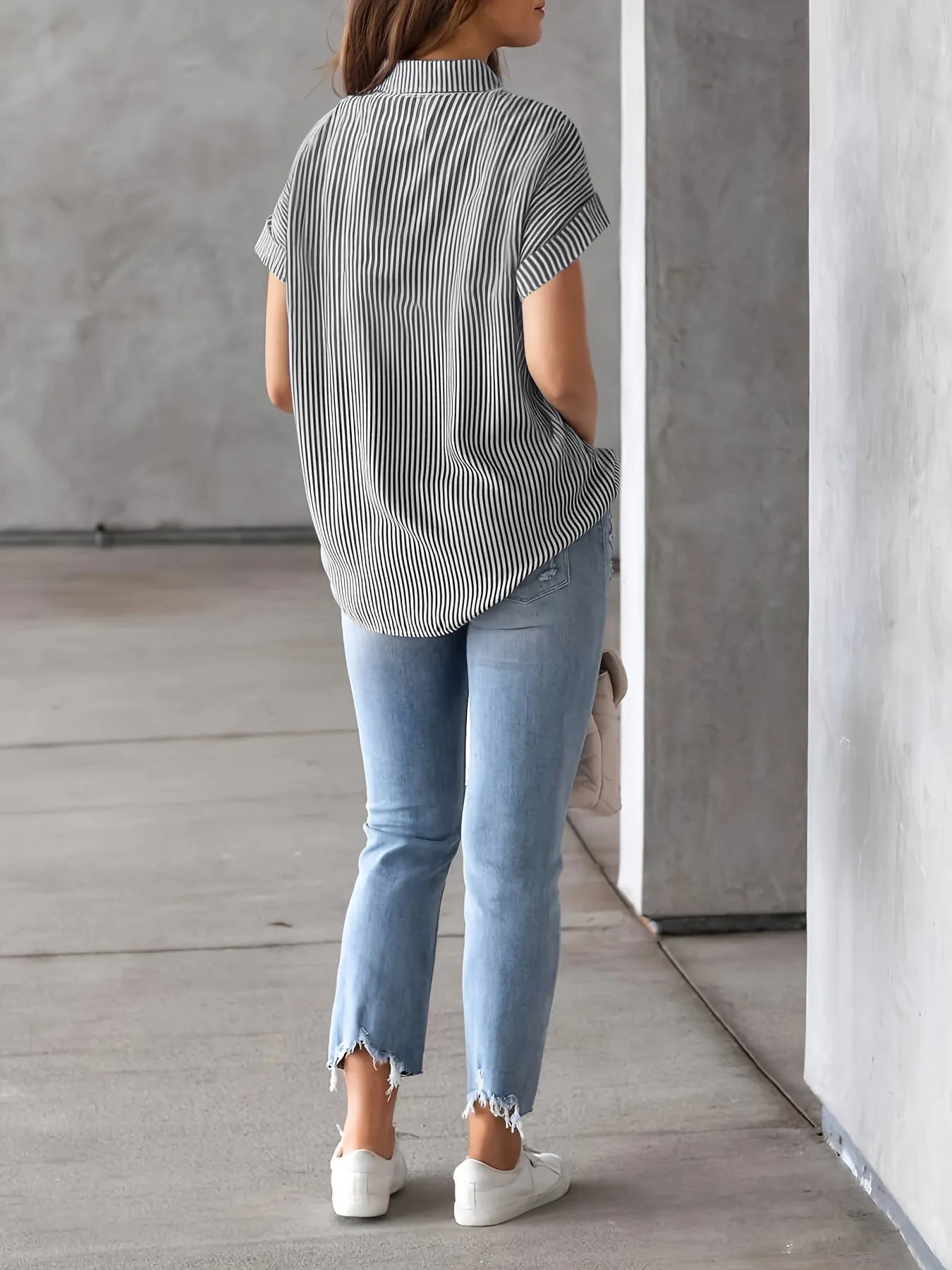 Full Size Striped Button-Up Casual Shirt with Pocket Plus Size
