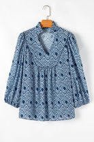 Geometric Print Frilled Notched Blouse