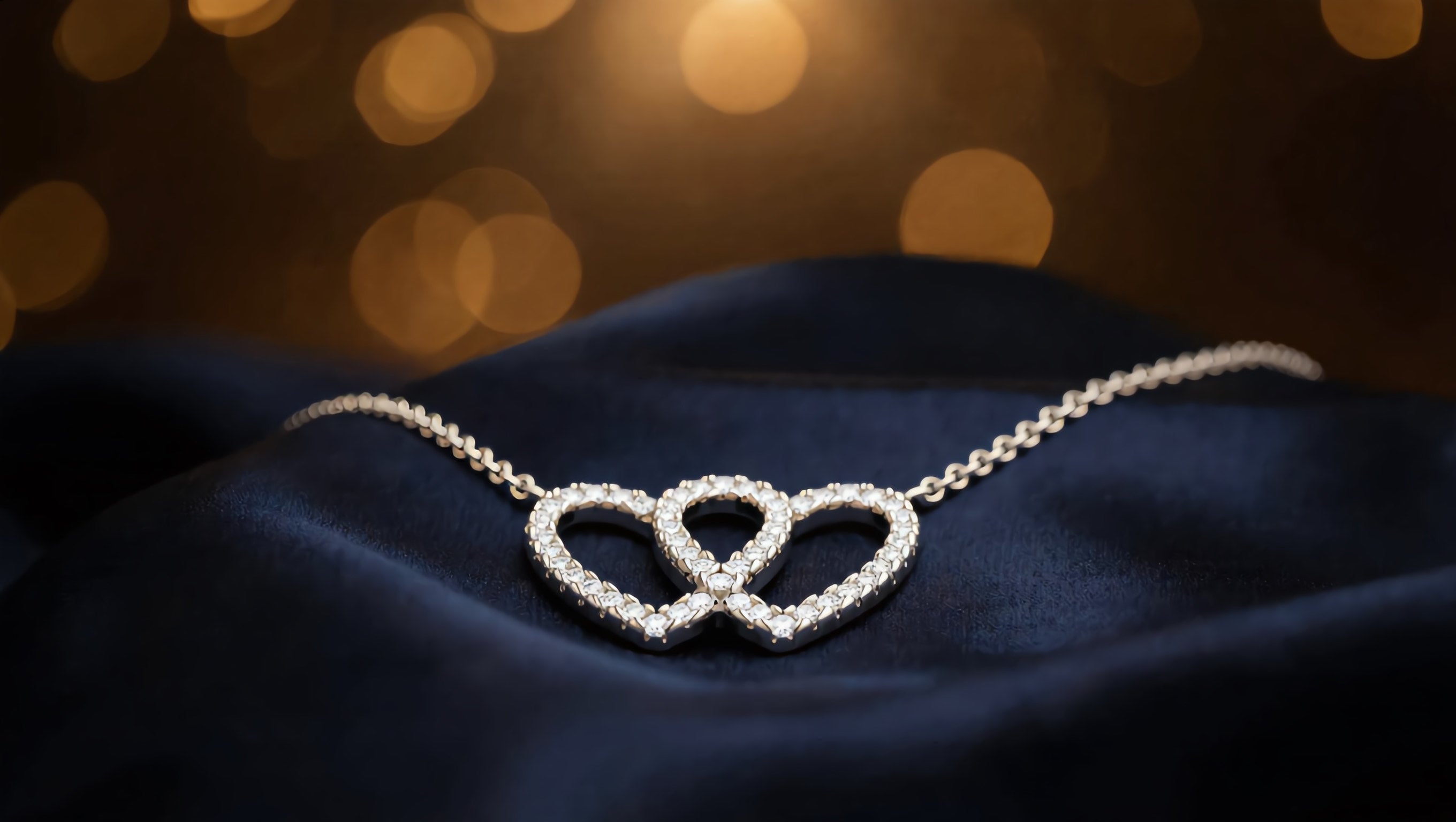 GL Creations presents this sterling silver double heart necklace, featuring two interlocking cubic zirconia-adorned hearts suspended from a delicate chain. Crafted from genuine sterling silver, this piece combines timeless elegance with contemporary design. The brilliant CZ stones catch light beautifully, creating a sophisticated sparkle perfect for everyday wear or special occasions. An ideal choice for those seeking quality jewelry that balances luxury appeal with accessible pricing. This necklace makes a meaningful gift for someone special or a refined addition to your personal collection.