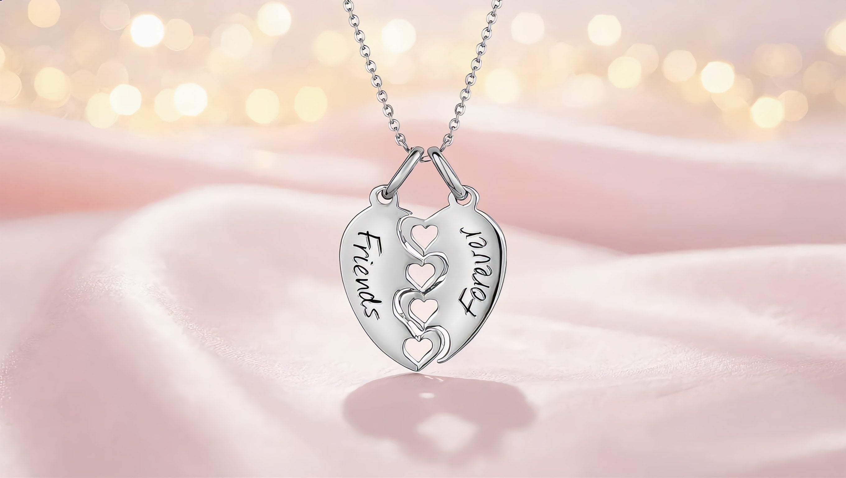 GL Creations presents this sterling silver pendant necklace, a timeless expression of friendship and connection. Crafted from authentic sterling silver, the "Friends Forever" pendant combines elegant design with lasting durability. The polished finish catches light beautifully, making it suitable for both everyday wear and special occasions. This piece serves as a meaningful gift for close friends or a personal reminder of cherished bonds. The quality sterling silver construction ensures longevity, while the classic aesthetic transcends seasonal trends. Perfect for layering or wearing solo, this necklace brings sophistication to any wardrobe.