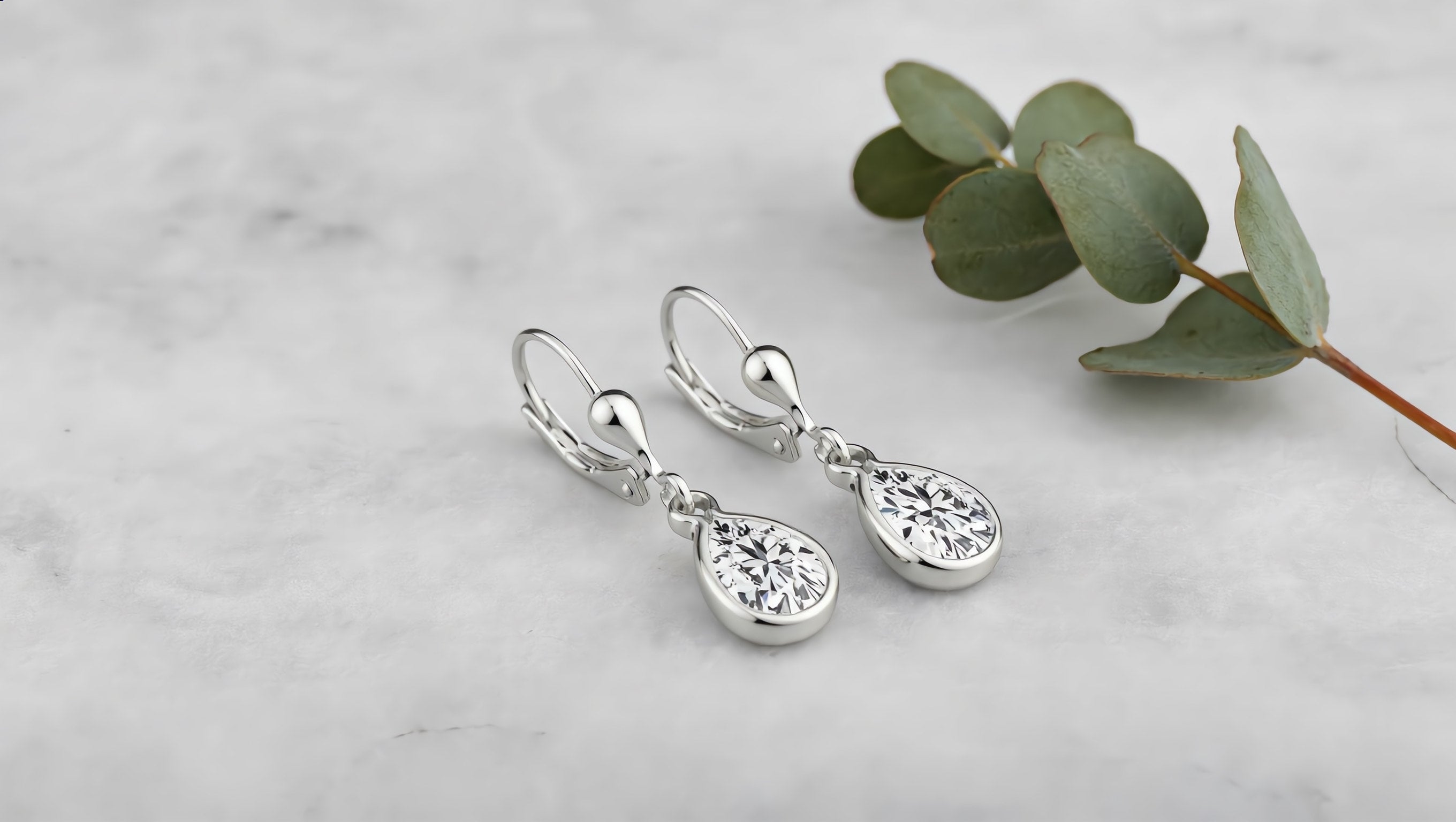 GL Creations- Sterling Silver Pear-Shaped Bezel CZ Leverback