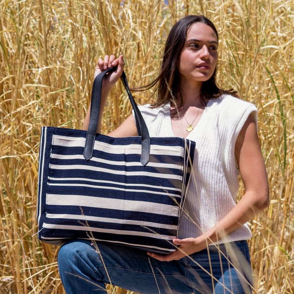 The namesake of our Artisan Program Coordinator, the Gladys Tote is the perfect blend of sophistication & fun. With snap closure, leather straps, and leather bottom, this durable piece is a great everyday option.