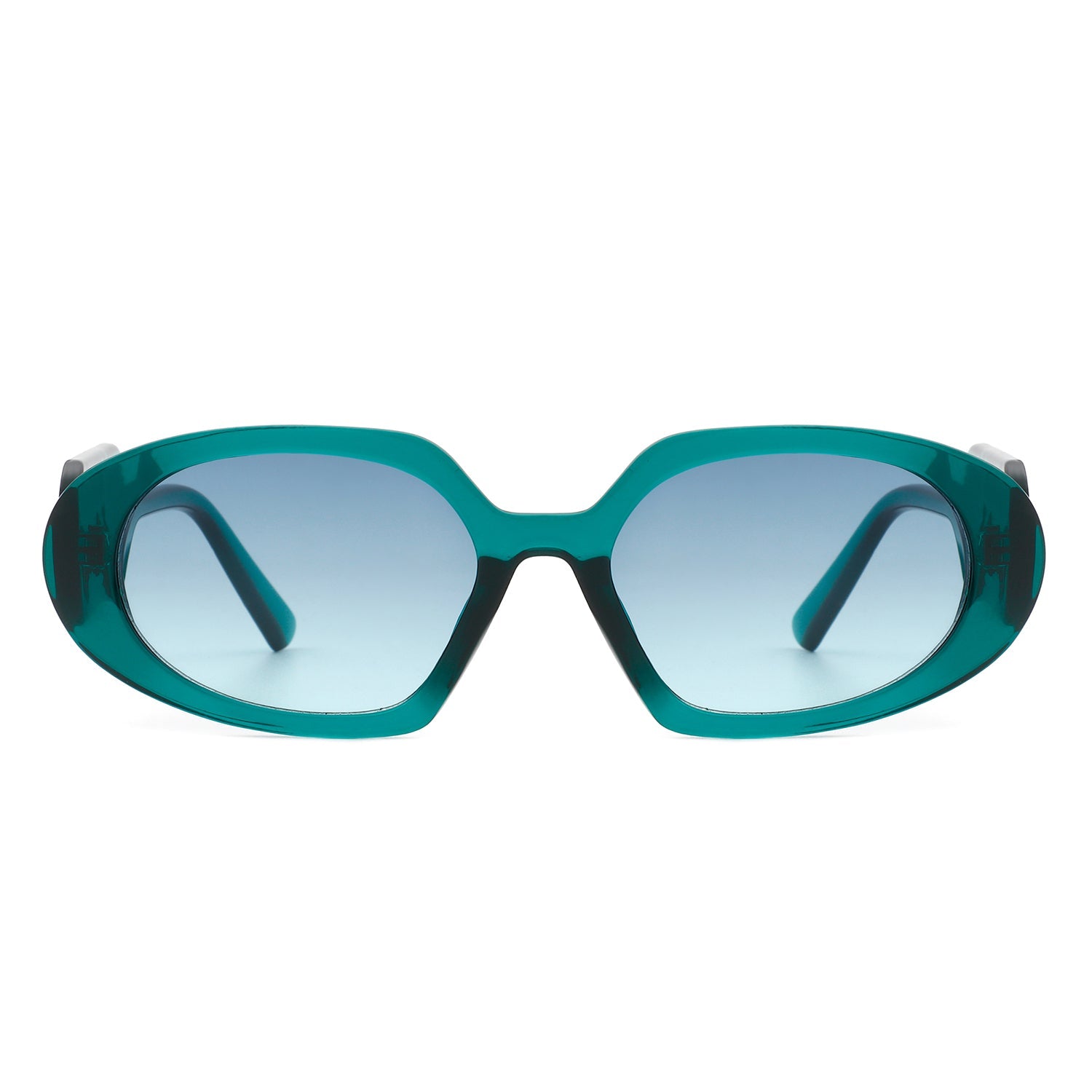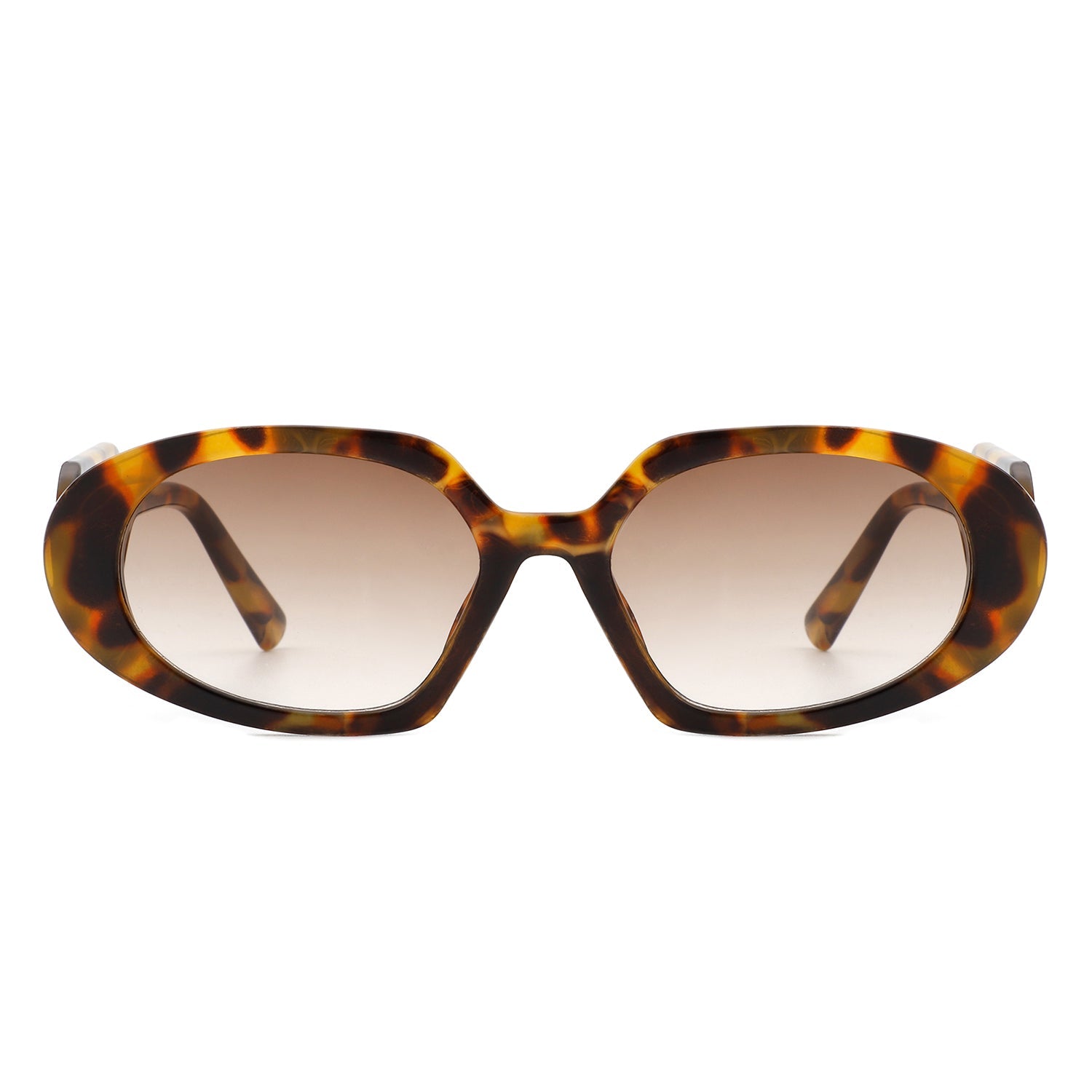 Glittera - Rectangle Retro Oval Chic Round Lens Leaf Design Fashion Sunglasses