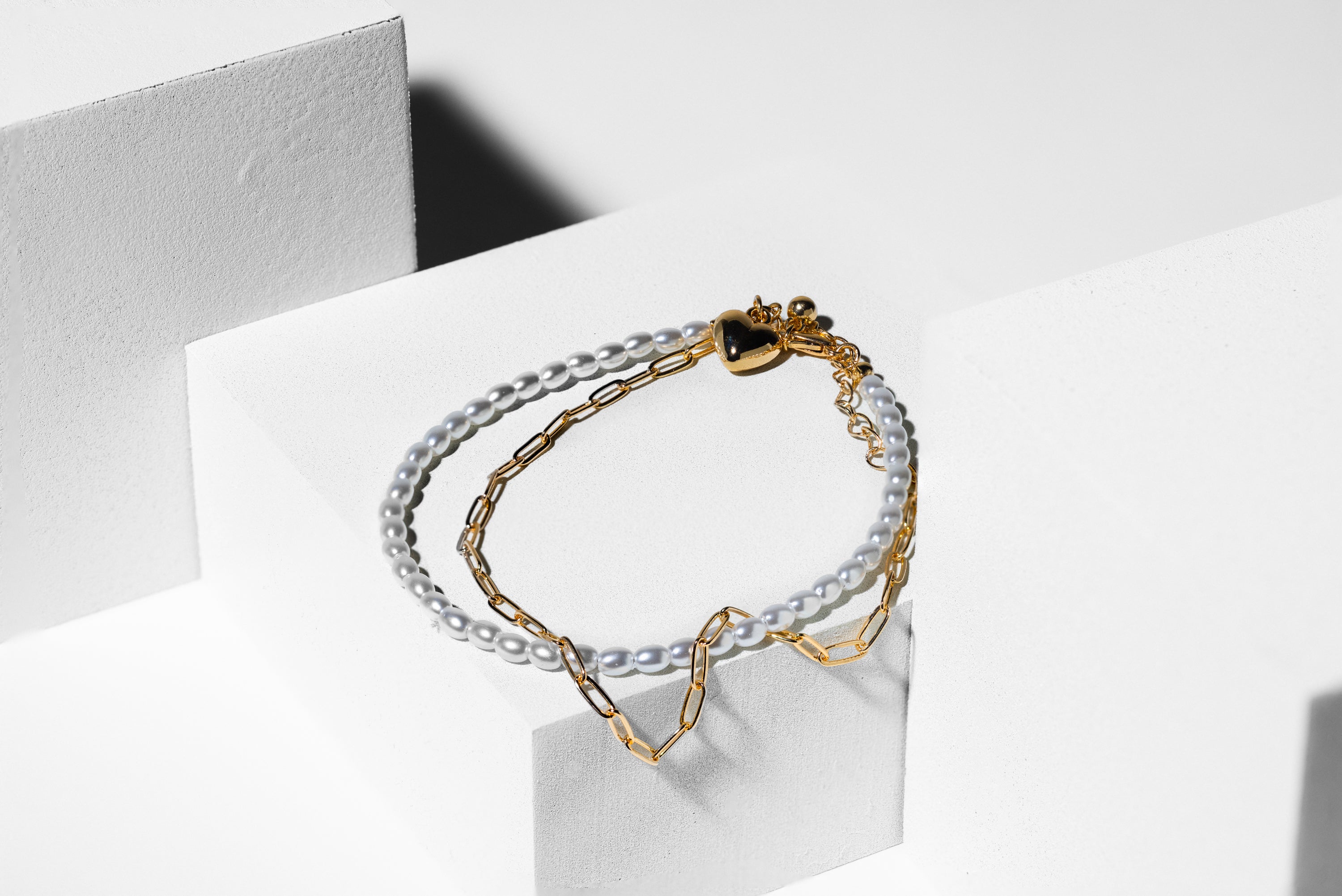 Gold Heart Chain Pearl Necklace