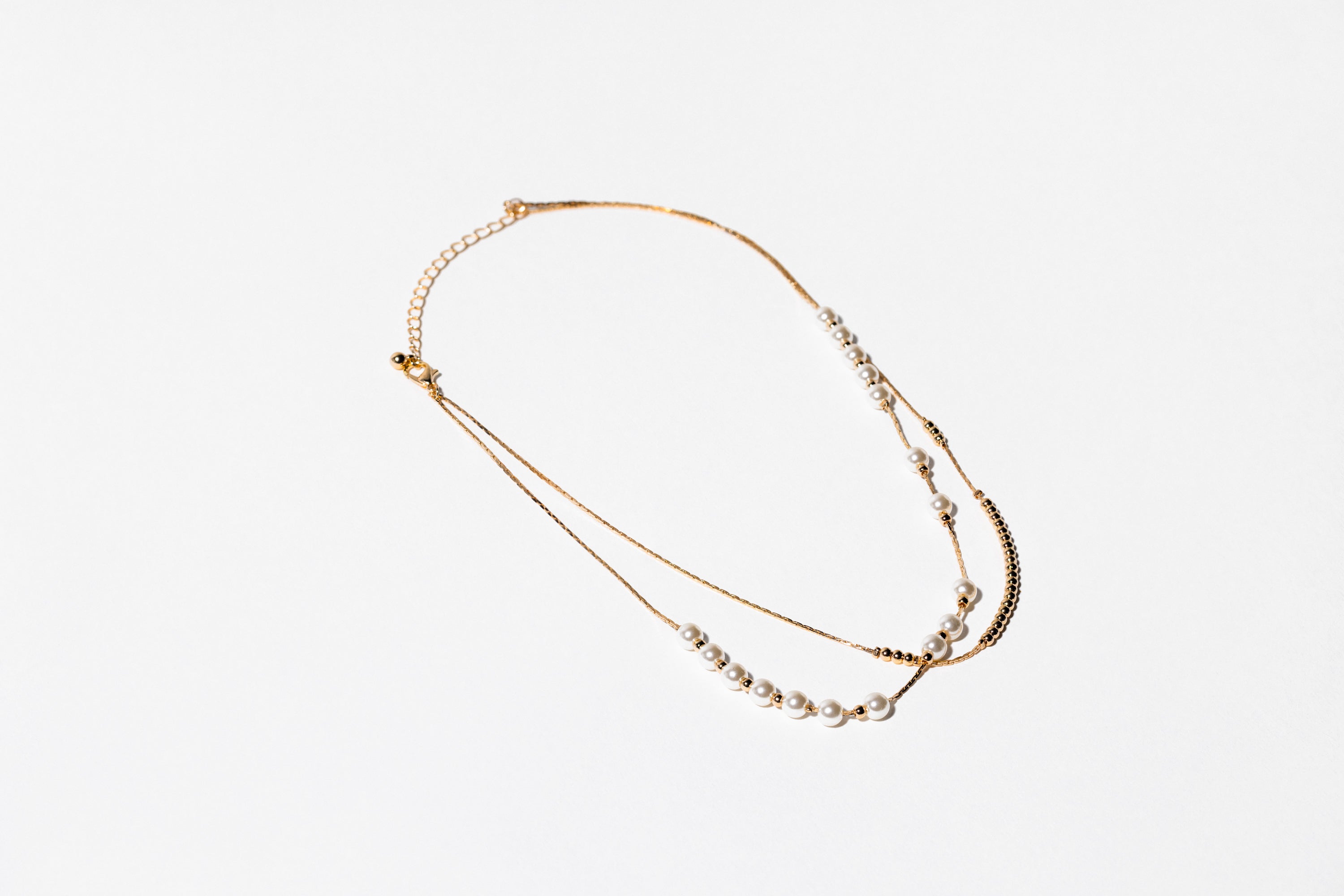 Gold Pearl Two Row Station Cluster Necklace