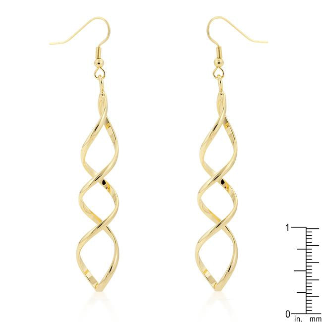 Gold hued metals twist into a drop design thats contemporary yet wearable. 18k plated gold is achieved using an electroplating process that coats the item with heavy layers of 18k Yellow Gold and color-treated to display a perfect 14k Hamilton gold color.