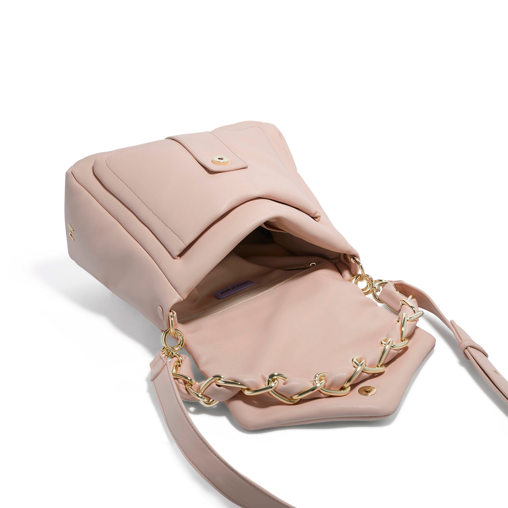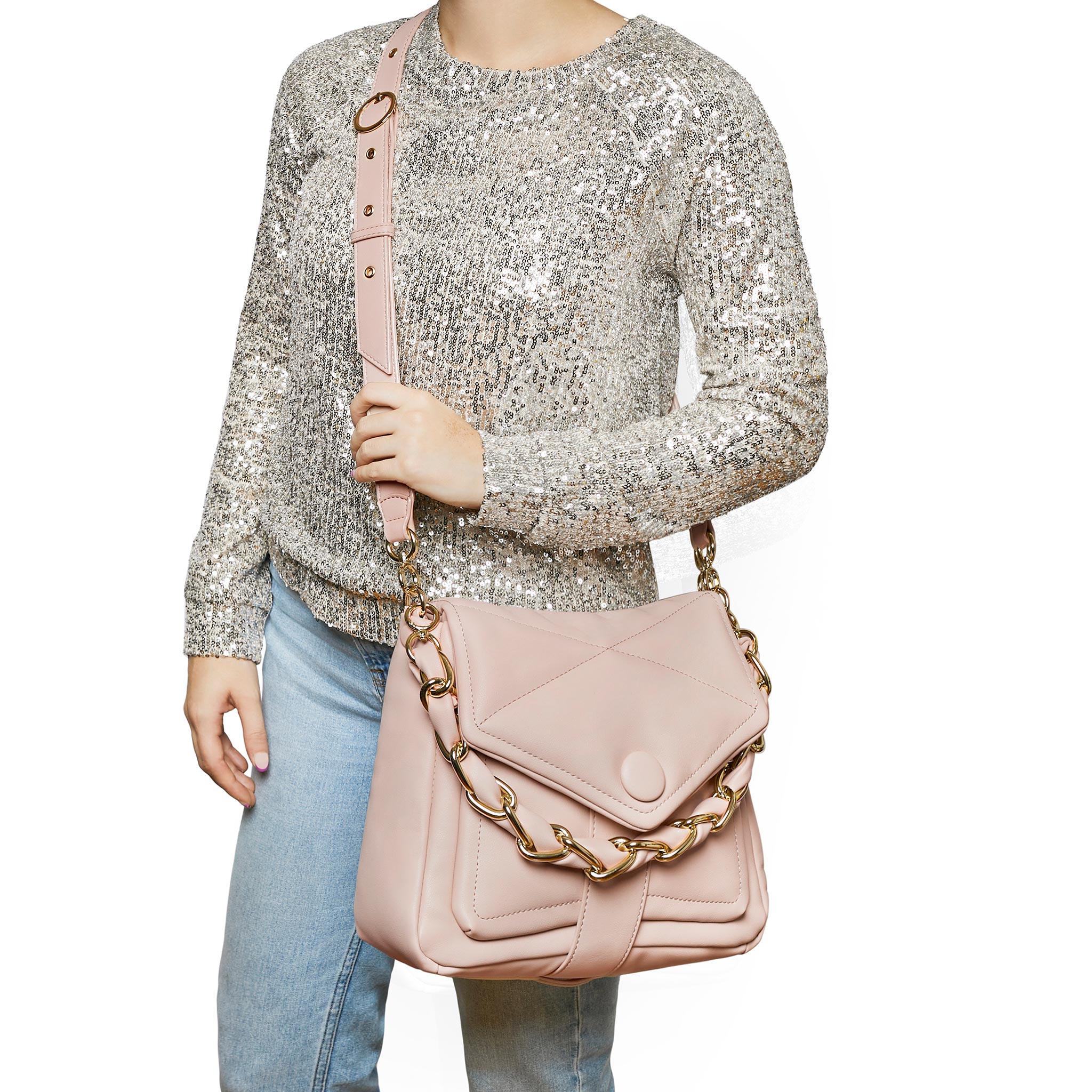 This convertible shoulder flap is designed with an updated retro vibe! Other design features include a chain shoulder strap, quilted detailing and a removable and adjustable crossbody strap for styling versatility. Abundant storage as well with a total of 5 pockets and 4 credit card slots.