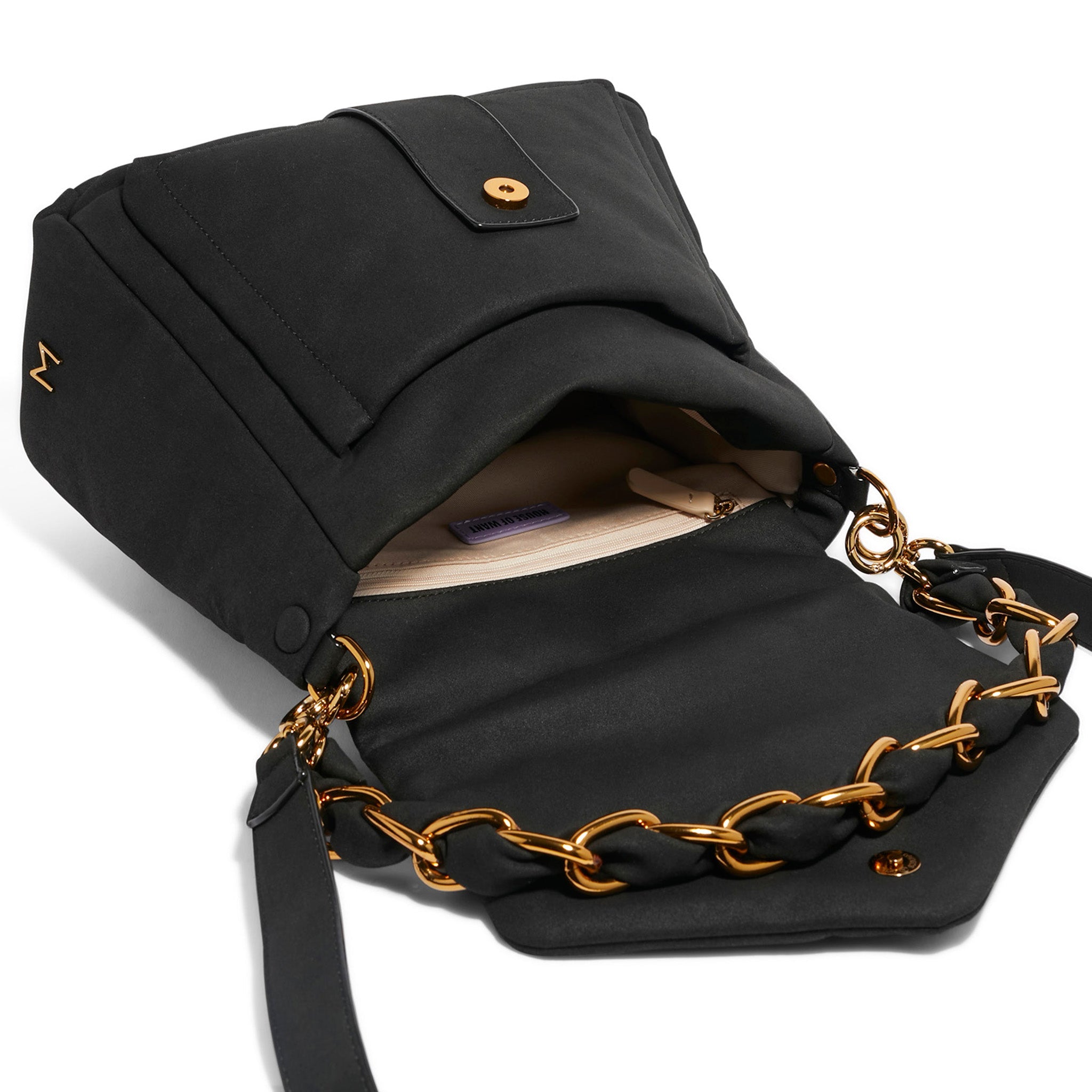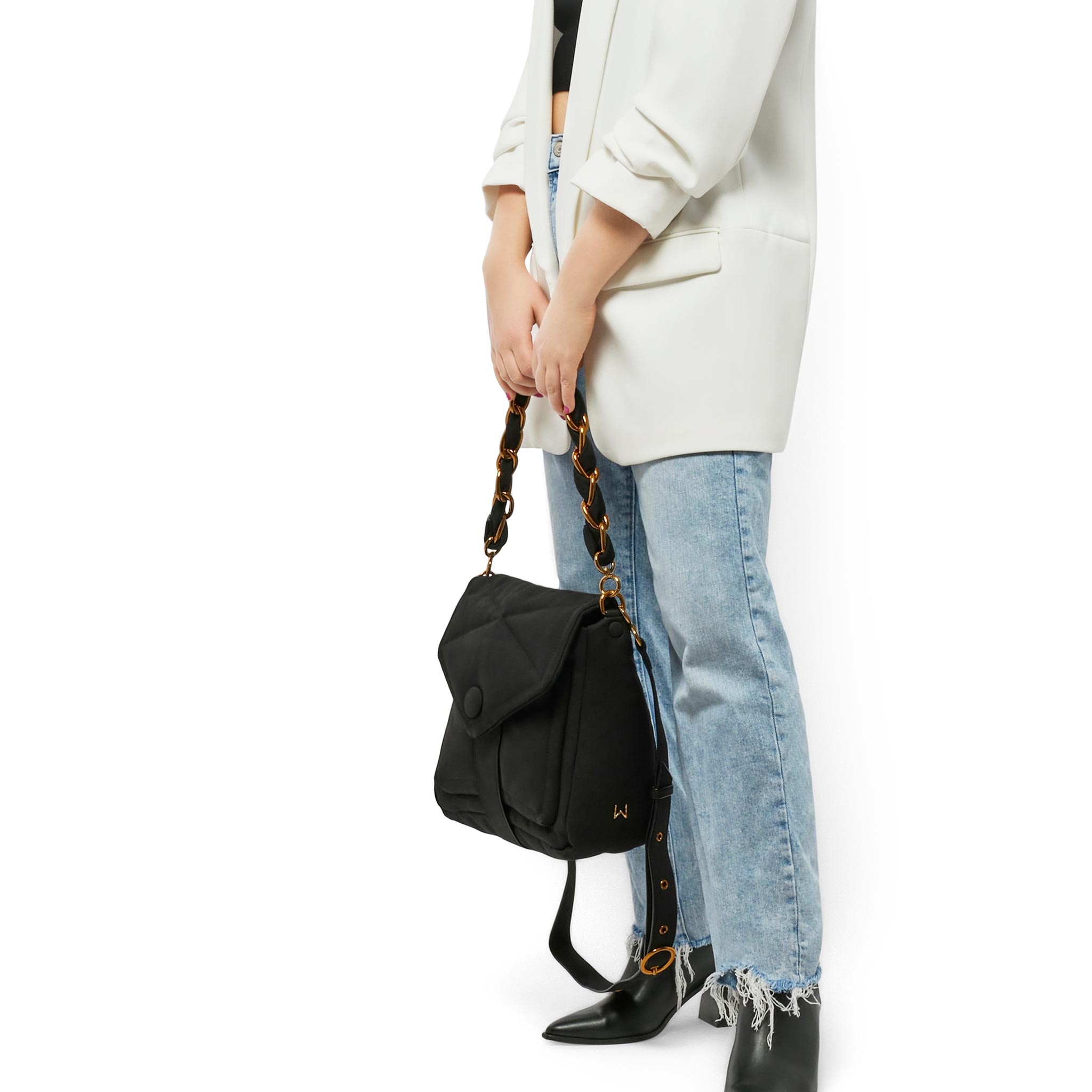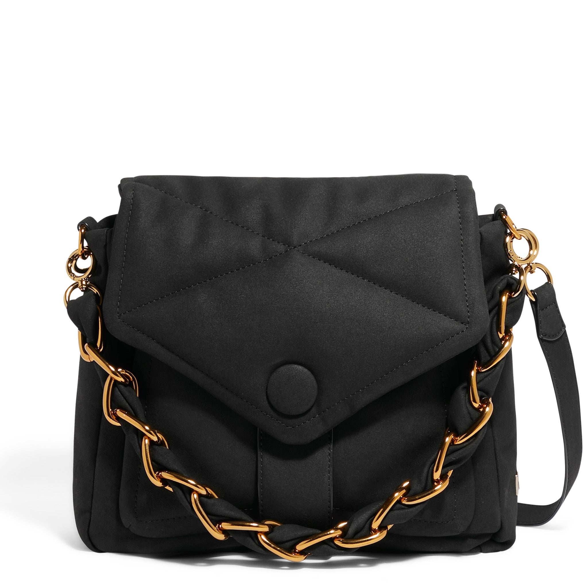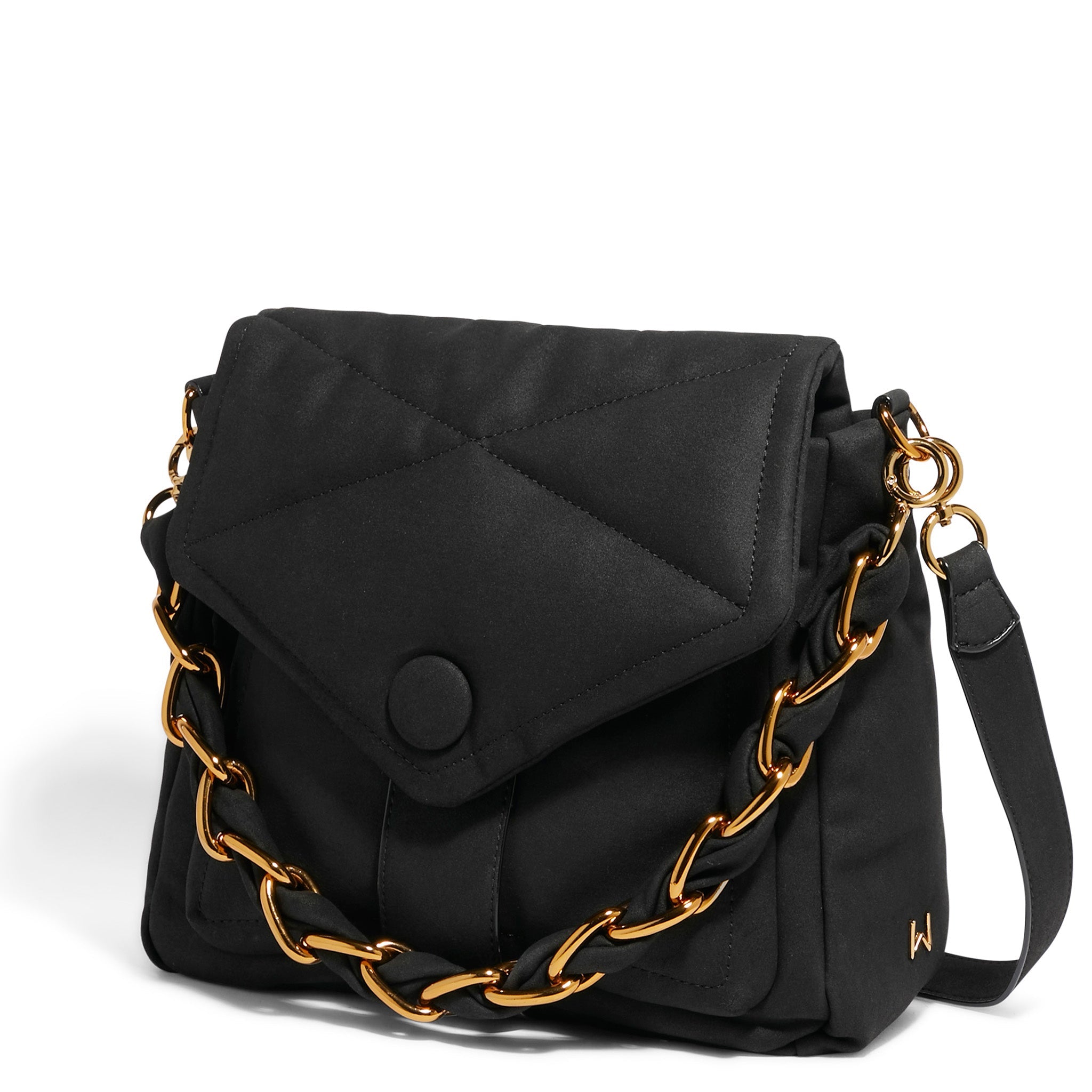 This convertible shoulder flap is designed with an updated retro vibe!  Other design features include a chain shoulder strap, quilted detailing and a removable and adjustable crossbody strap for styling versatility.  Abundant storage as well with a total of 5 pockets and 4 credit card slots.