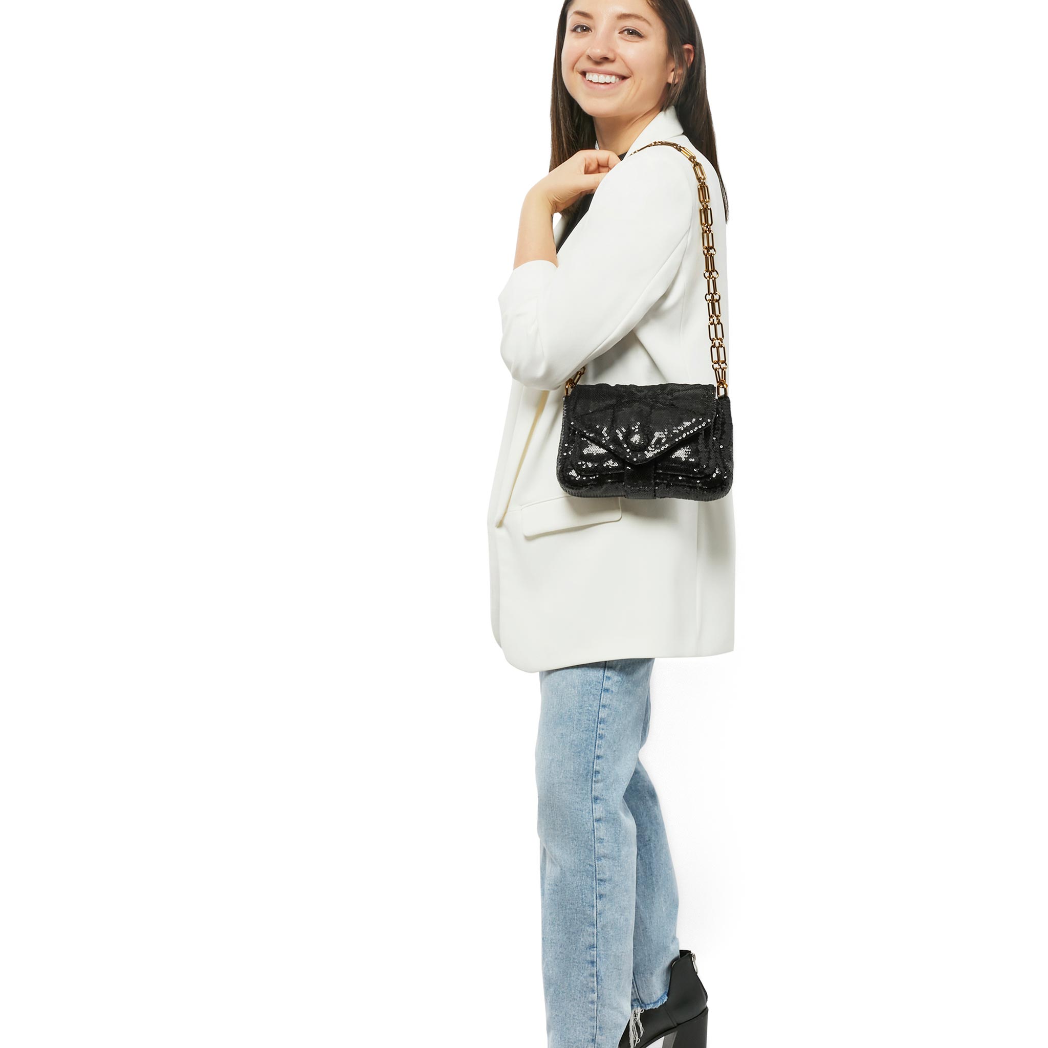 You possess that shining, brilliant quality! This shoulder flap that converts to crossbody looks forward creating more splendor with you! Available in elegant sequins or fun faux fur.