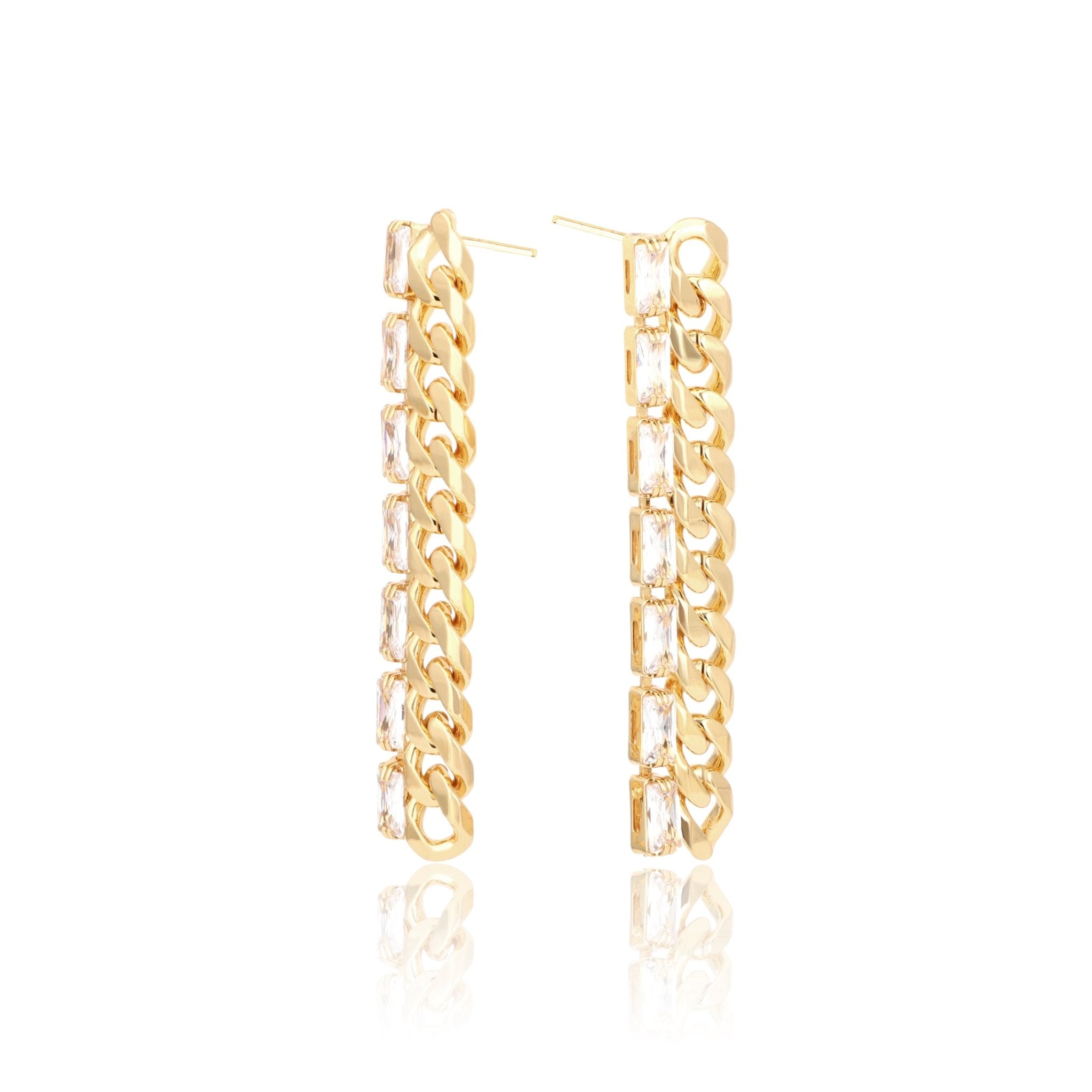The HARLOW EARRING features a sleek design measuring 1.77" in length and 0.35" in width, crafted from 18K gold-plated copper with a sterling silver post, making it safe for sensitive ears. Its non-tarnish and waterproof qualities ensure lasting shine and durability. To keep your earrings looking their best, avoid contact with body products and clean gently with a lint-free microfiber cloth. Perfect for everyday wear, these earrings combine elegance with practical care.