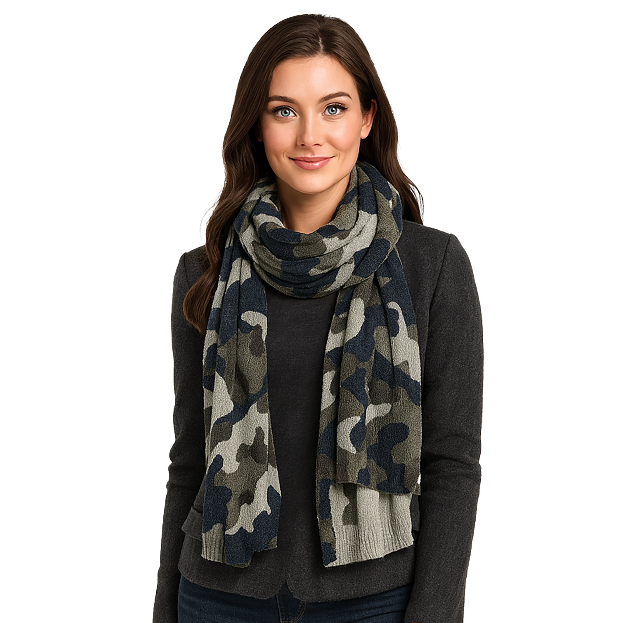 Blue Pacific Heavenly Spa Wrap—ultra-soft brushed wrap in solids & camo. Lightweight, cozy & cloud-like comfort for travel, lounging & winter wear.