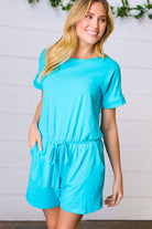 Ice Blue Brushed Knit Elastic Waist Pocketed Romper
