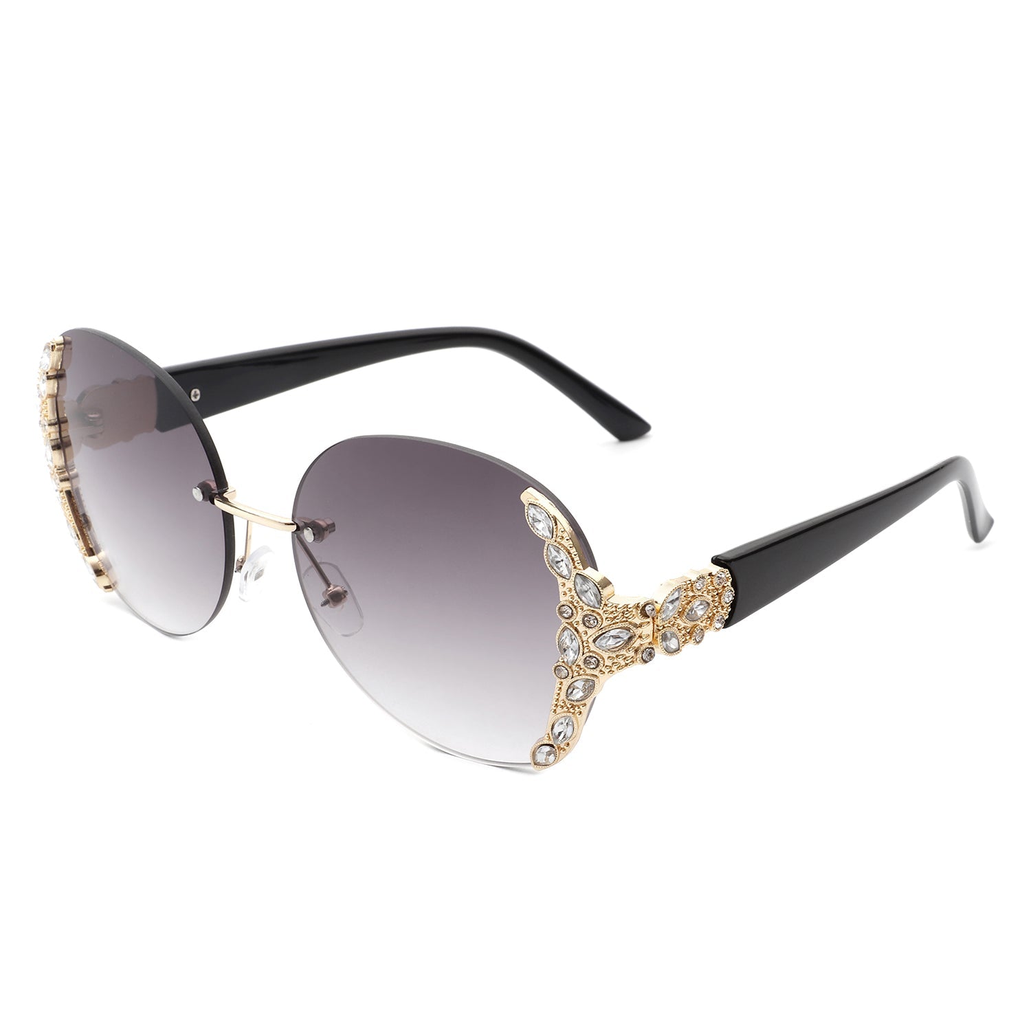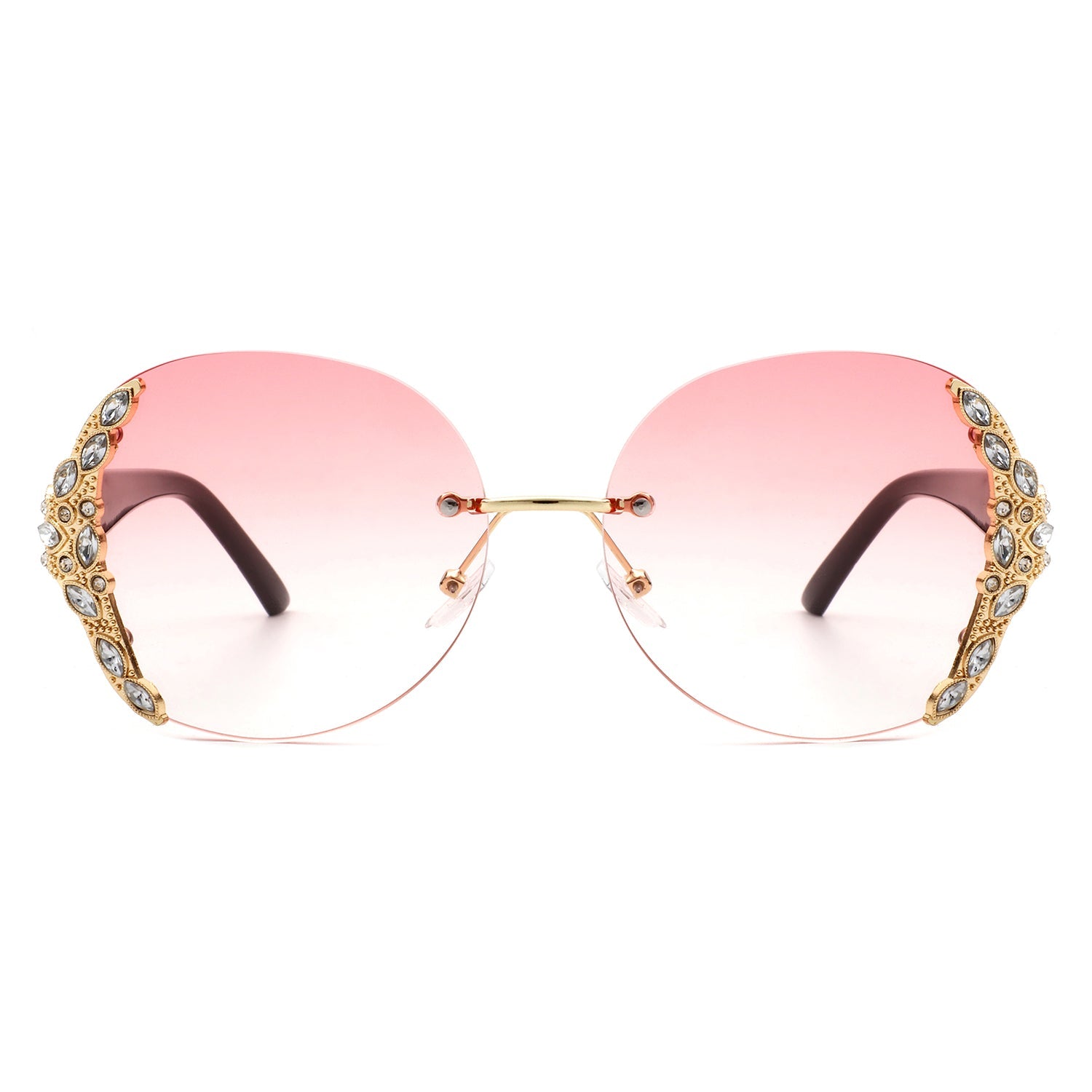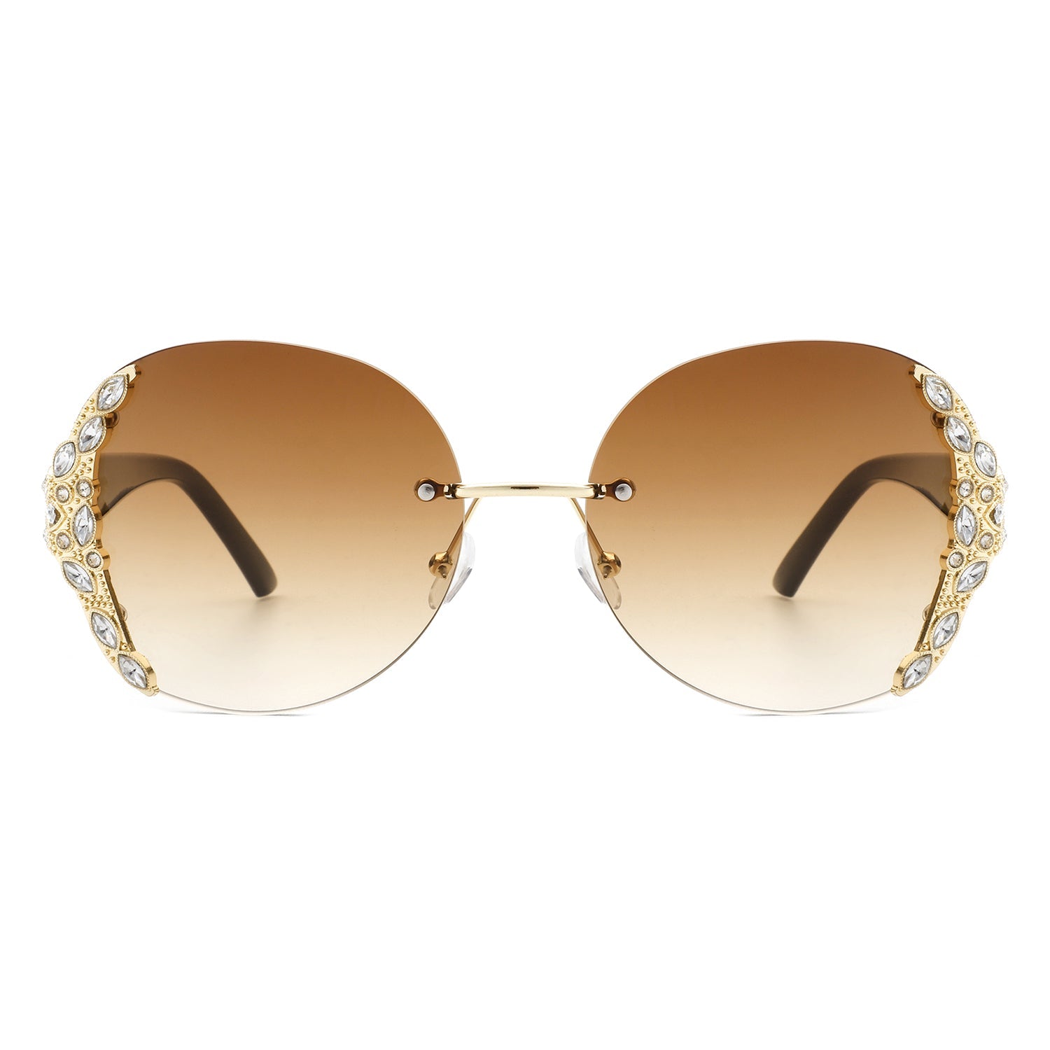 Jadeisle - Women Oval Rimless Rhinestone Design Round Oversize Sunglasses
