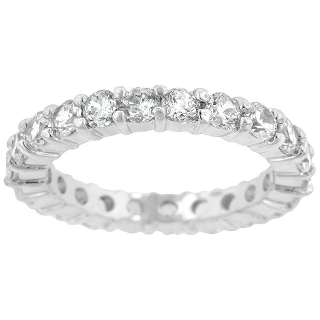 Our most popular eternity band is available in many colors! Take your pick! Our genuine rhodium finish is achieved using an electroplating process that coats the item with heavy layers of rhodium a close cousin to platinum which gives our jewelry a platinum luster.