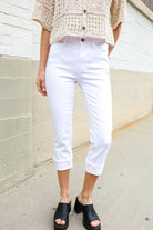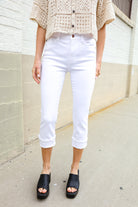 Judy Blue White Midrise Cuffed Hem Skinny Fit Capris
