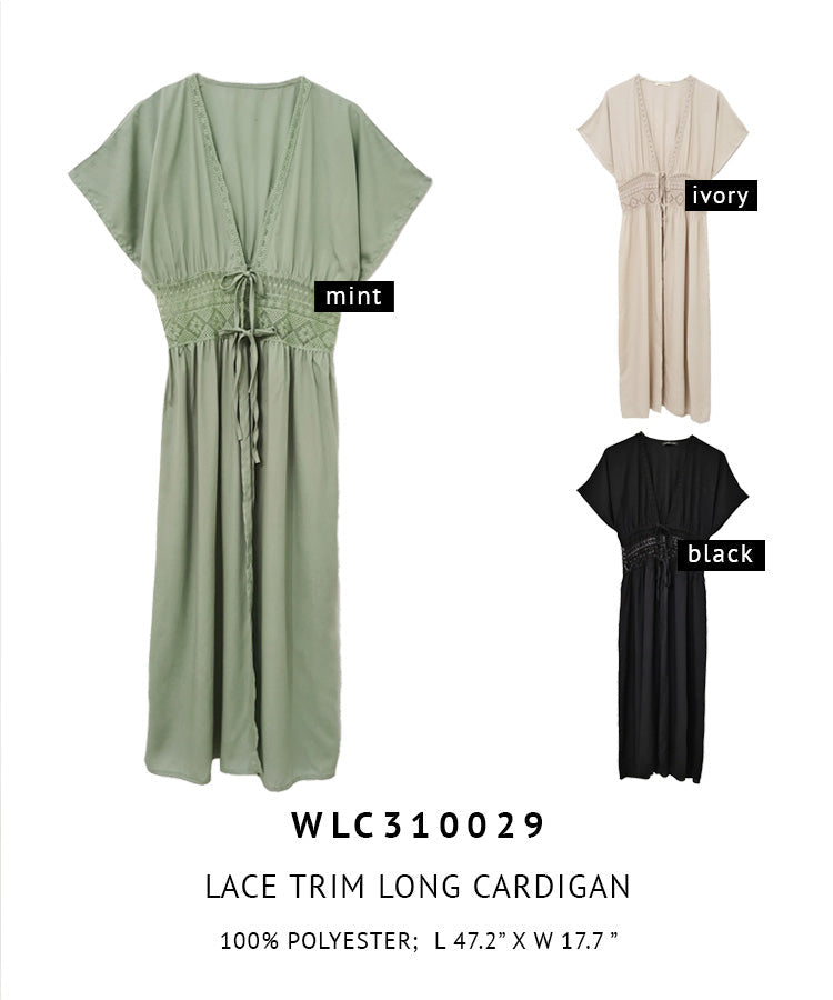 Lace Trim Long Cardigan