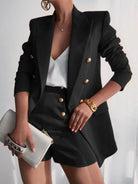 Lapel Collar Long Sleeve Blazer and Shorts Set