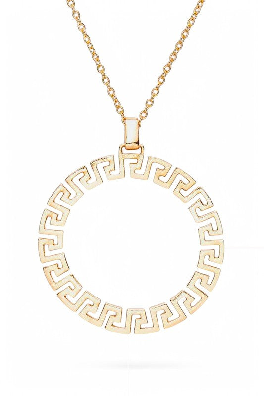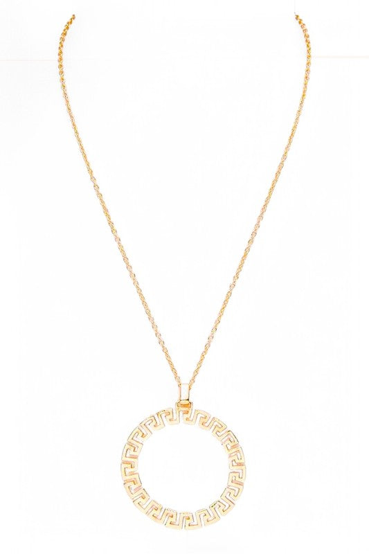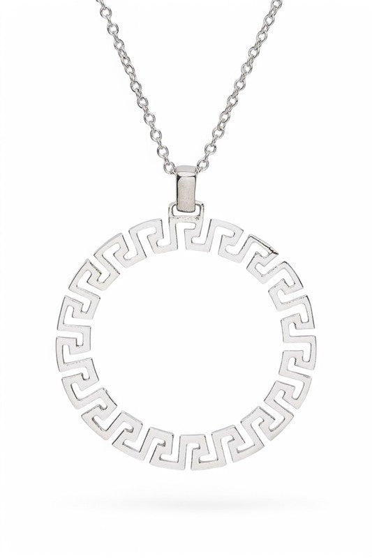 Laser Cut Pattern Round Pendant Necklace