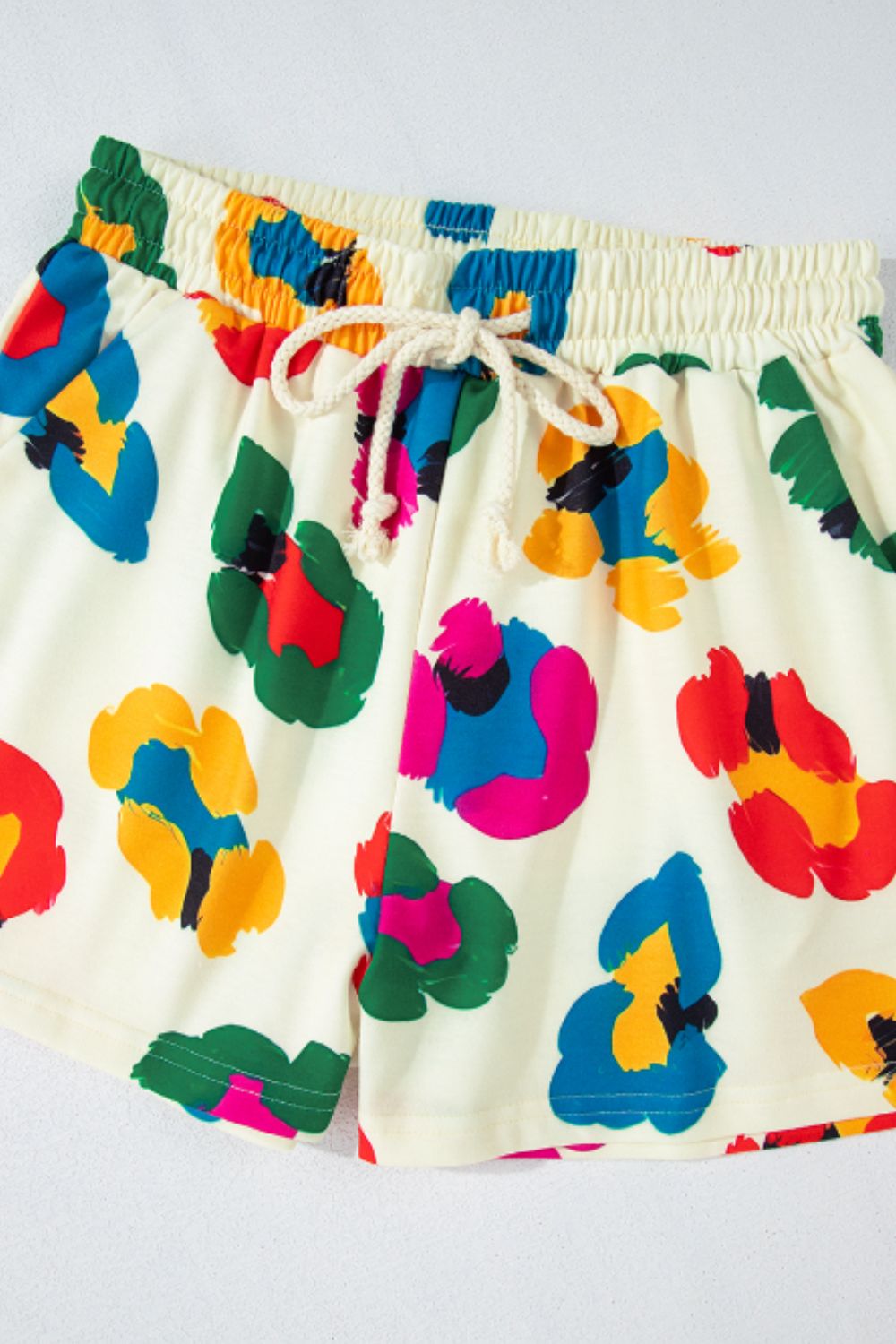 Leopard Round Neck Long Sleeve Top and Drawstring Shorts Set