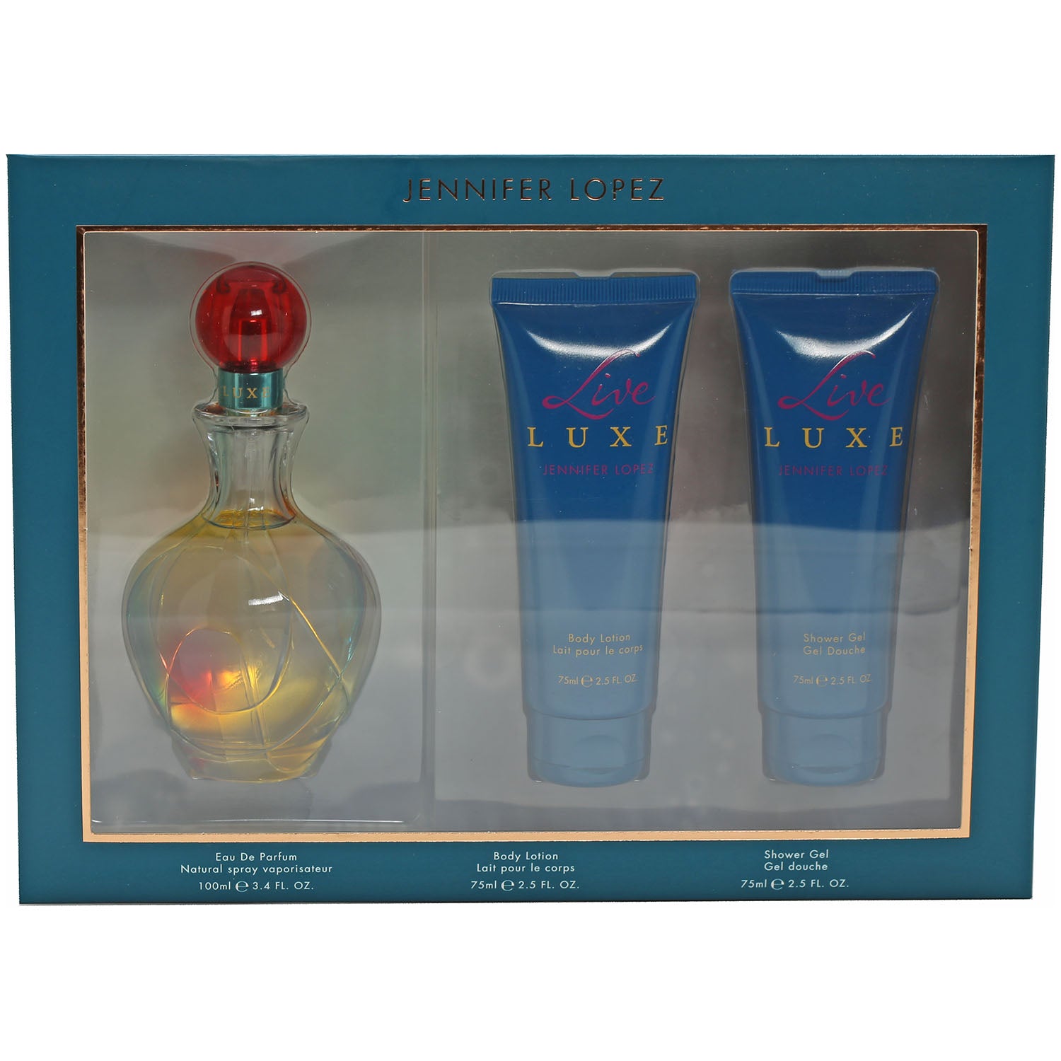 LIVE LUXE LADIES BY J. LO SET (3.4 OZ EDP, 2.5 OZ BODY LOTION, 2.5 OZ SHOWER GEL SET)