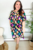 Look adorable in this vibrant floral print woven babydoll dress featuring a trendy notched ribbon bow tie, side pockets and stunning folded bubble elbow-length sleeves.