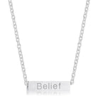 Inspirational script accents the face of a simple bar necklace. Perfect for everyday wear and a must-have in all jewelry boxes!