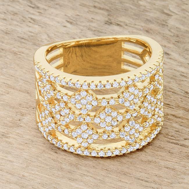 Marlene 0.6ct CZ 14k Gold Wide Band Cocktail Ring