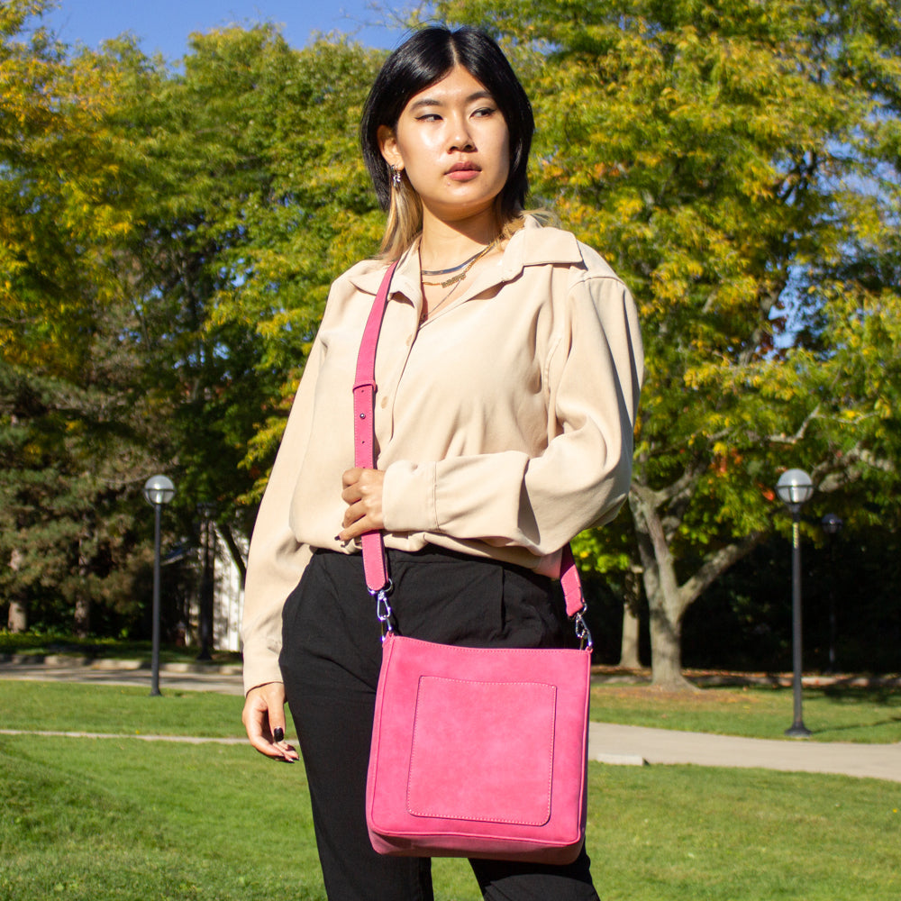 Love this new material, soft and rich feel, with vibrant colors, makes this one a new favorite. The May crossbody features unique guitar straps, complimenting each design. It also comes with a long strap to match the bag, for your conservative days out.