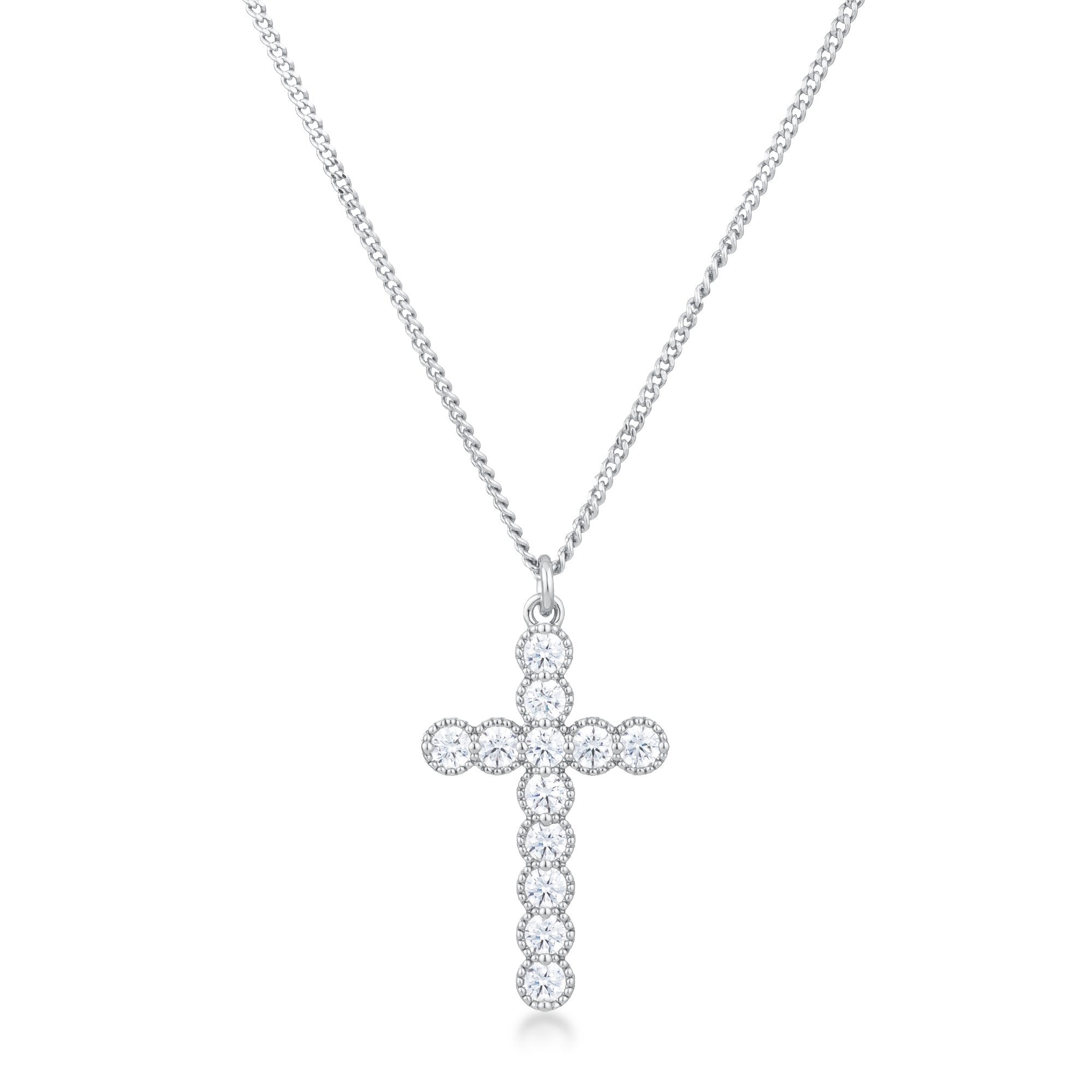 Micro Beaded Rhodium Plated Clear CZ Cross Pendant