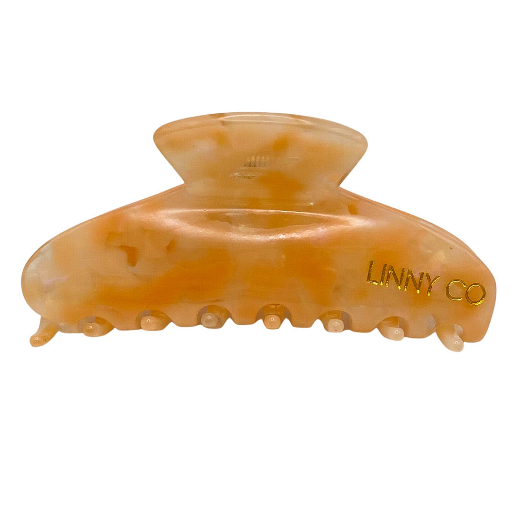 If you were looking for the perfect claw clip, look no further. Sturdy and strong, with a covered spring, this clip wont break on you. Makes the perfect accessory to your bag strap. Made of thick, beautiful acetate and designed in Dallas, Texas by Linny.