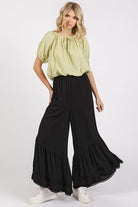 Mittoshop Lace Ruffle Asymmetric Hem Wide Leg Pants