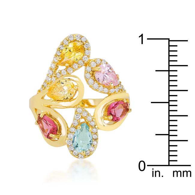 This ring comes with a variety of colored cubic zirconia. 18k plated gold is achieved using an electroplating process that coats the item with heavy layers of 18k Yellow Gold and color-treated to display a perfect 14k Hamilton gold color.
