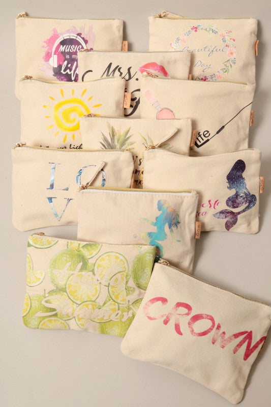 Multi Print Cotton Canvas Eco Pouch Bags