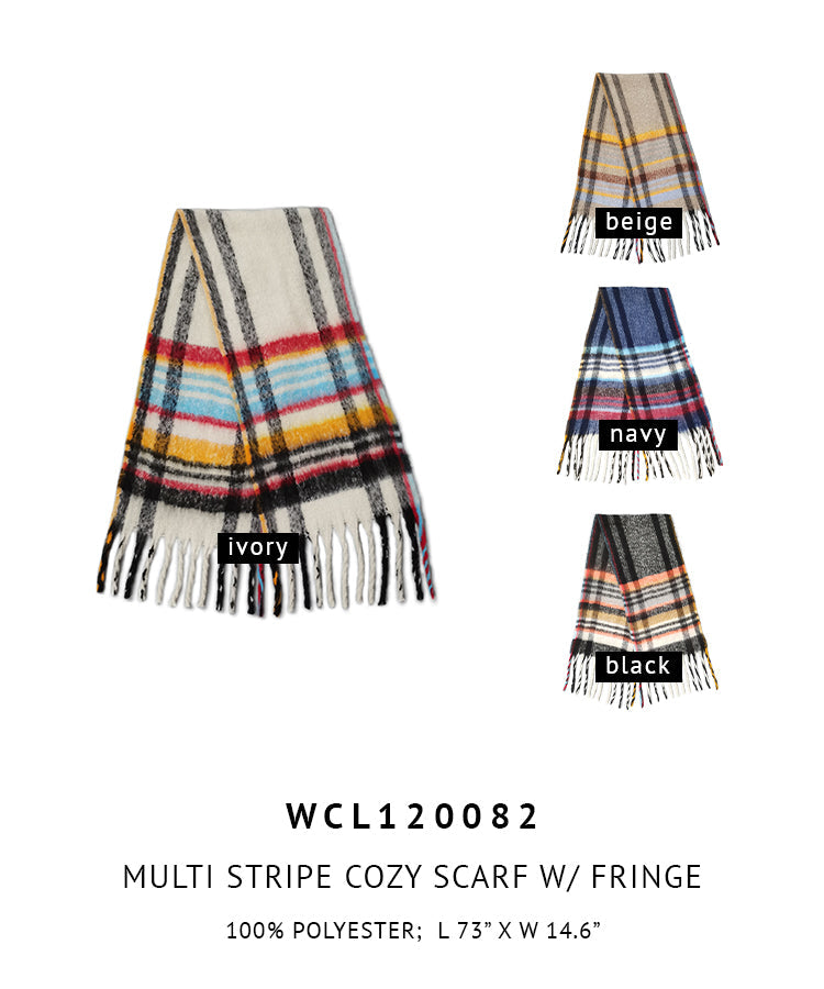Multi Stripe Cozy Scarf With Fringe