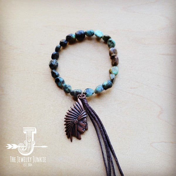 Natural Turquoise Stretch Bracelet w/ Indian Charm