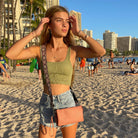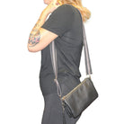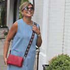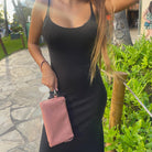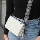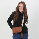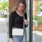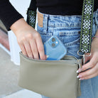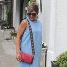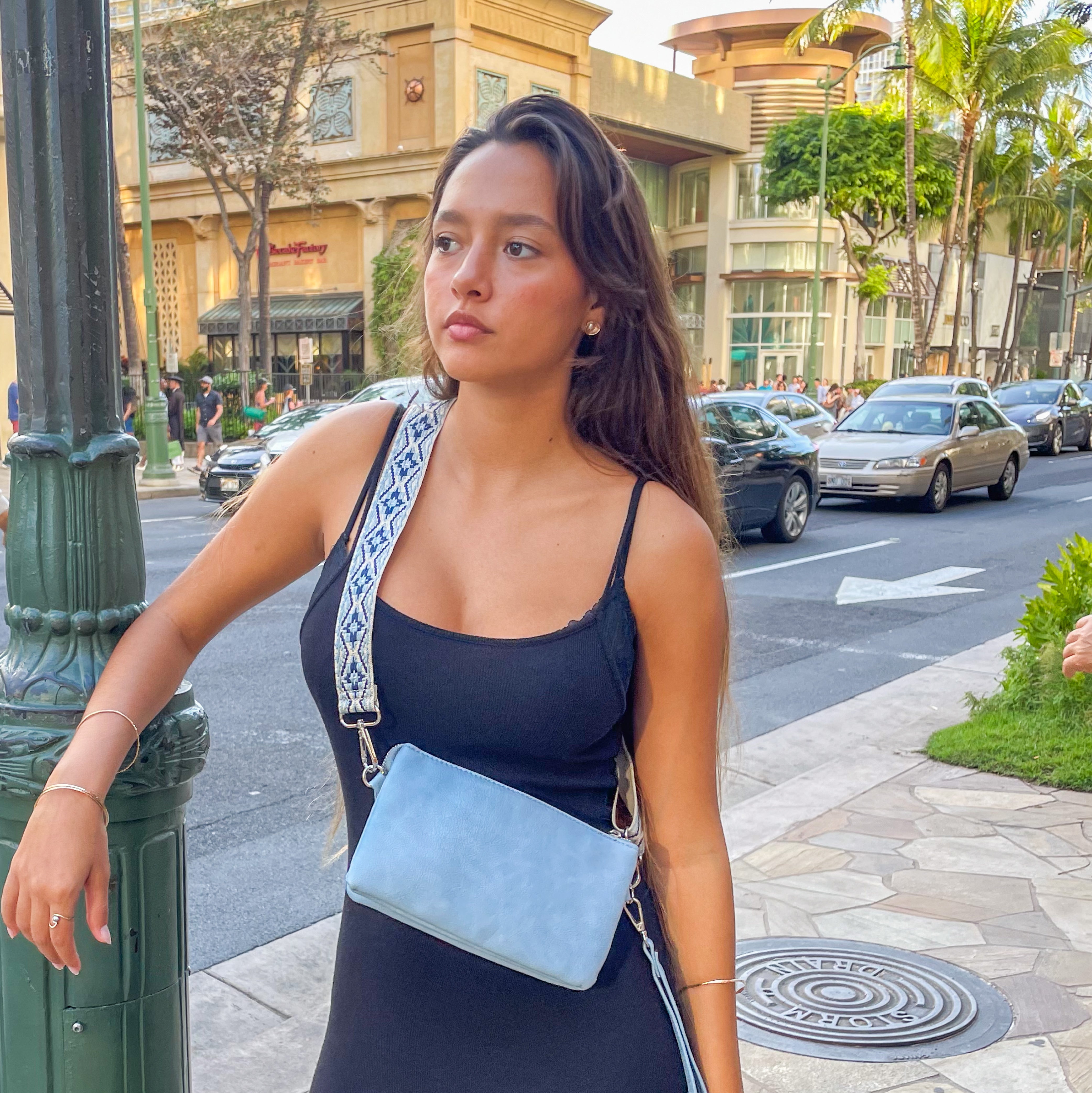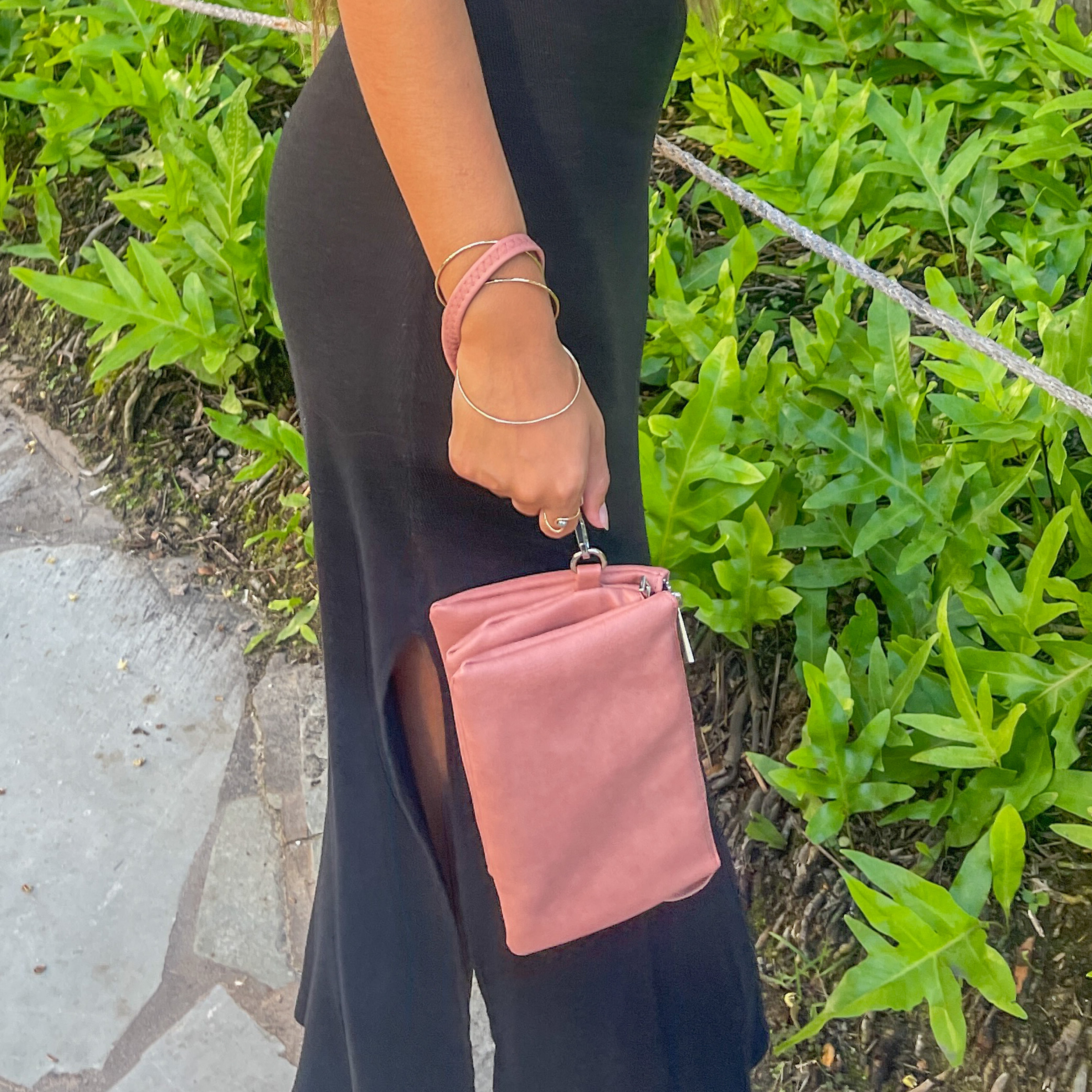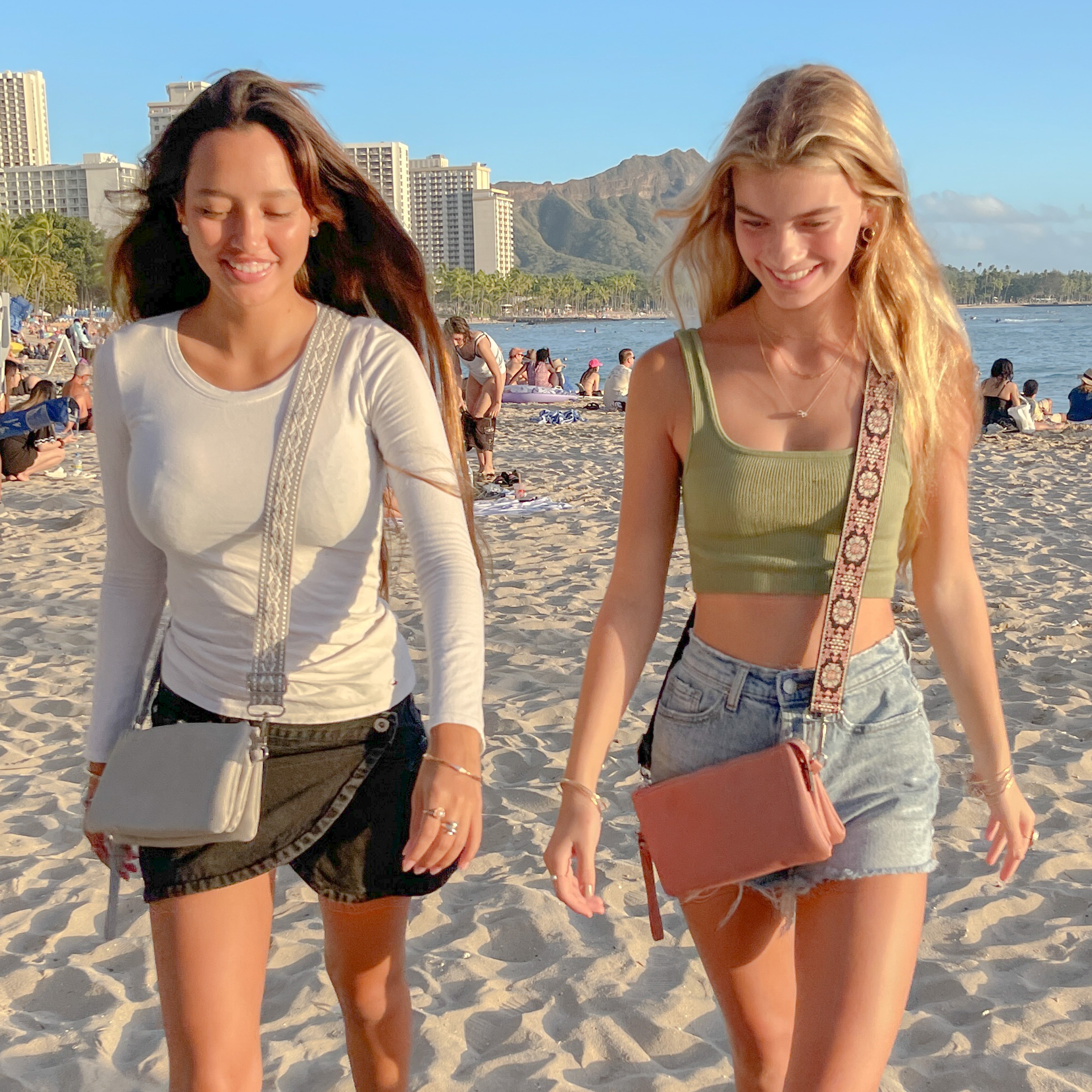If you like organization, this bag is for you! Three separate compartments, including a center zippered area. Carry your phone, sunglasses, lipstick and more! You can even fit a small wallet, but with the 3 built-in card sleeves, you won’t need it!