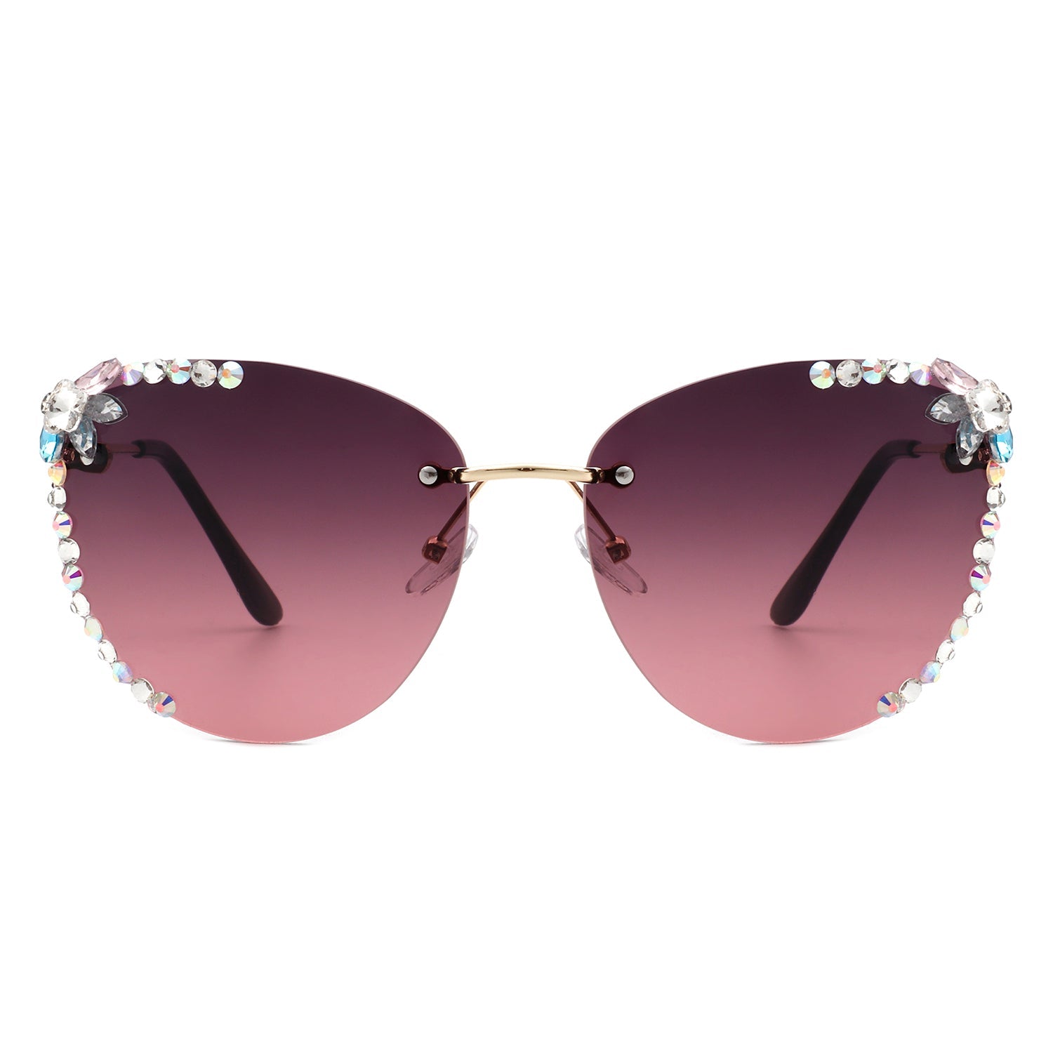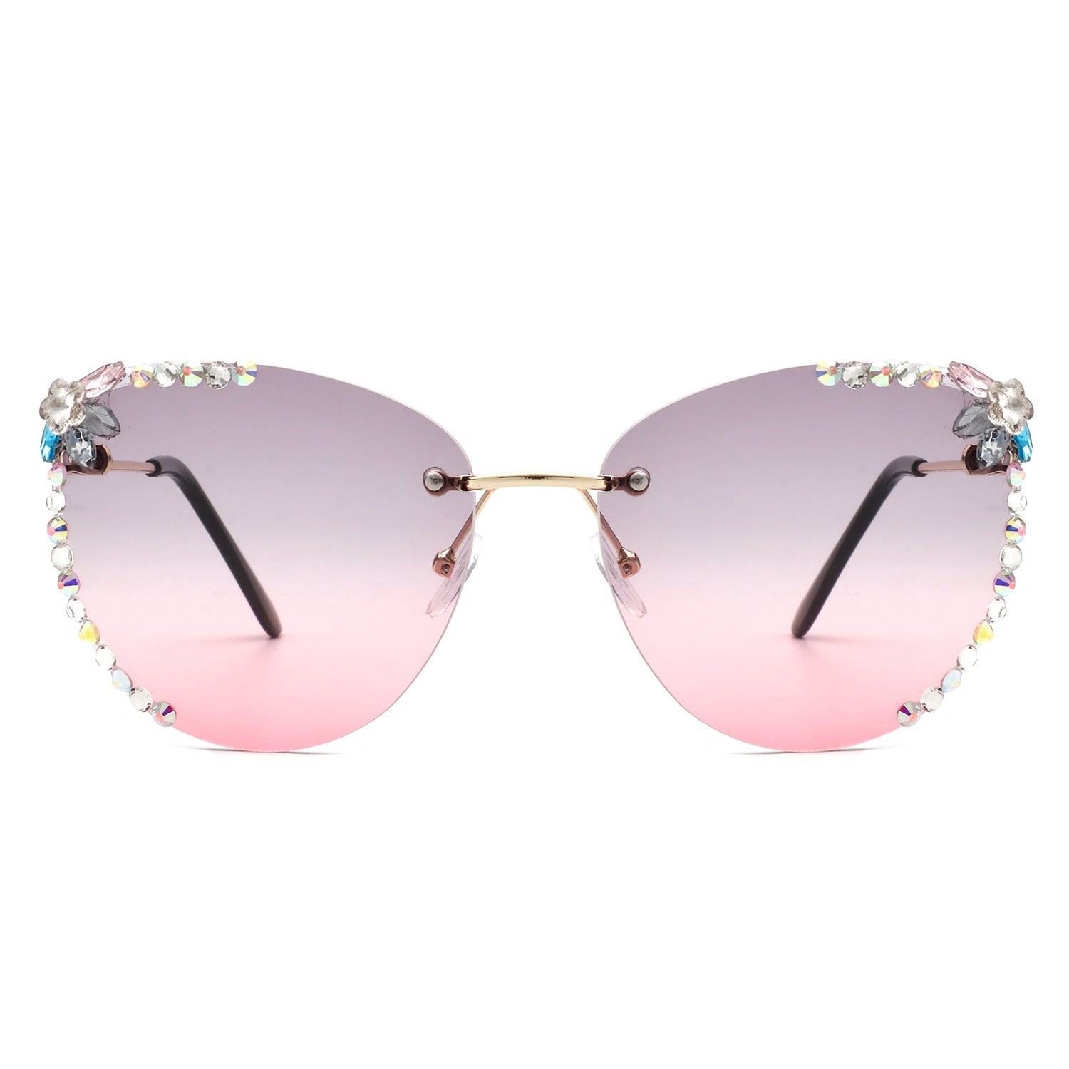 Nightbri - Women Rimless Tinted Chic Rhinestone Fashion Cat Eye Sunglasses