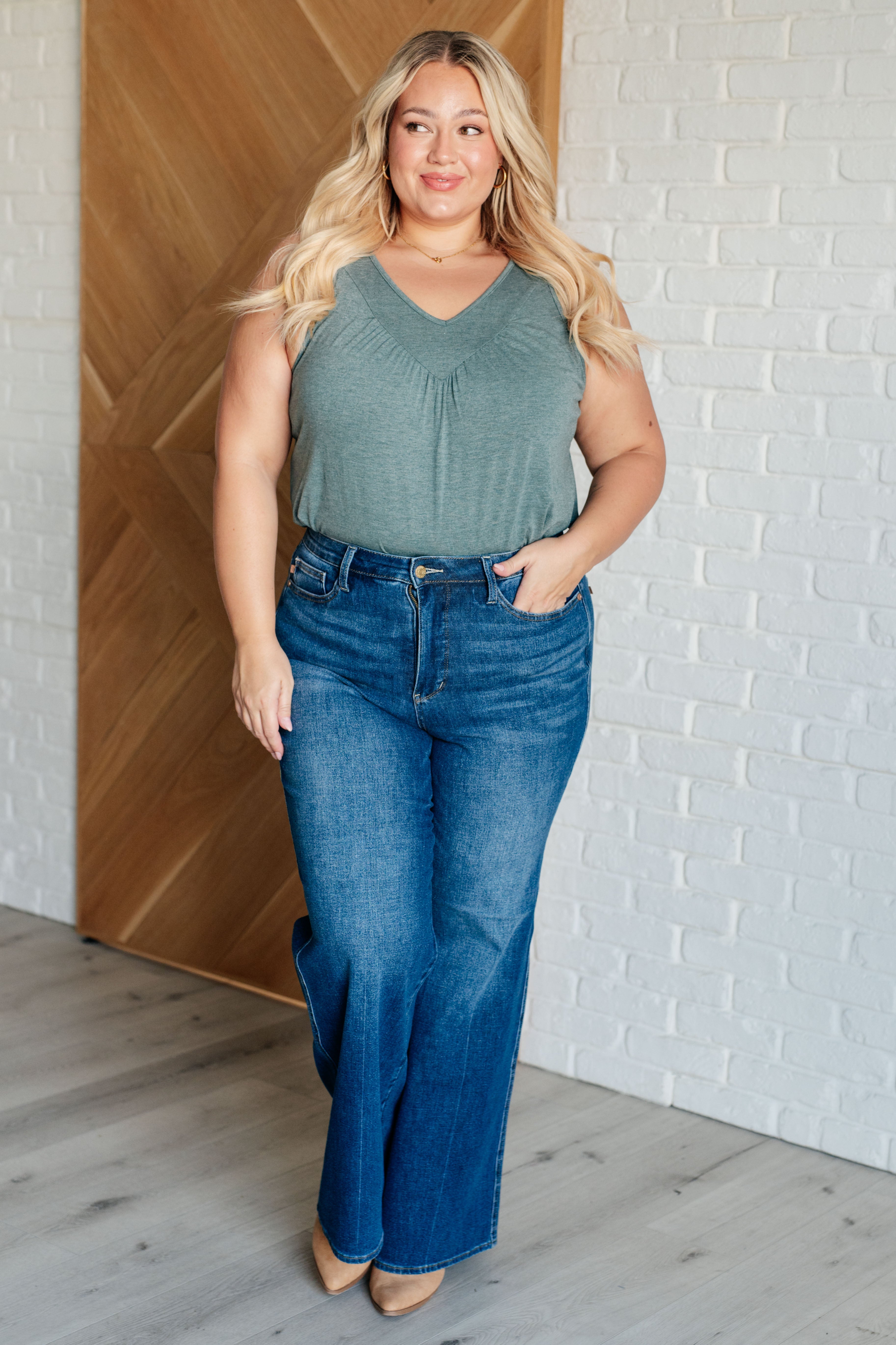 Stay effortlessly stylish and comfortable in our Not So Anxious V-Neck Tank. The flattering V-neckline adds a touch of elegance, while the ruched detailing brings a subtly chic twist. Sleeveless for easy wear during warmer days or under jackets, this tank is designed to keep you feeling at ease and looking fabulous. Ideal for both relaxed days and dressed-up outings, itβs a versatile staple for any wardrobe.