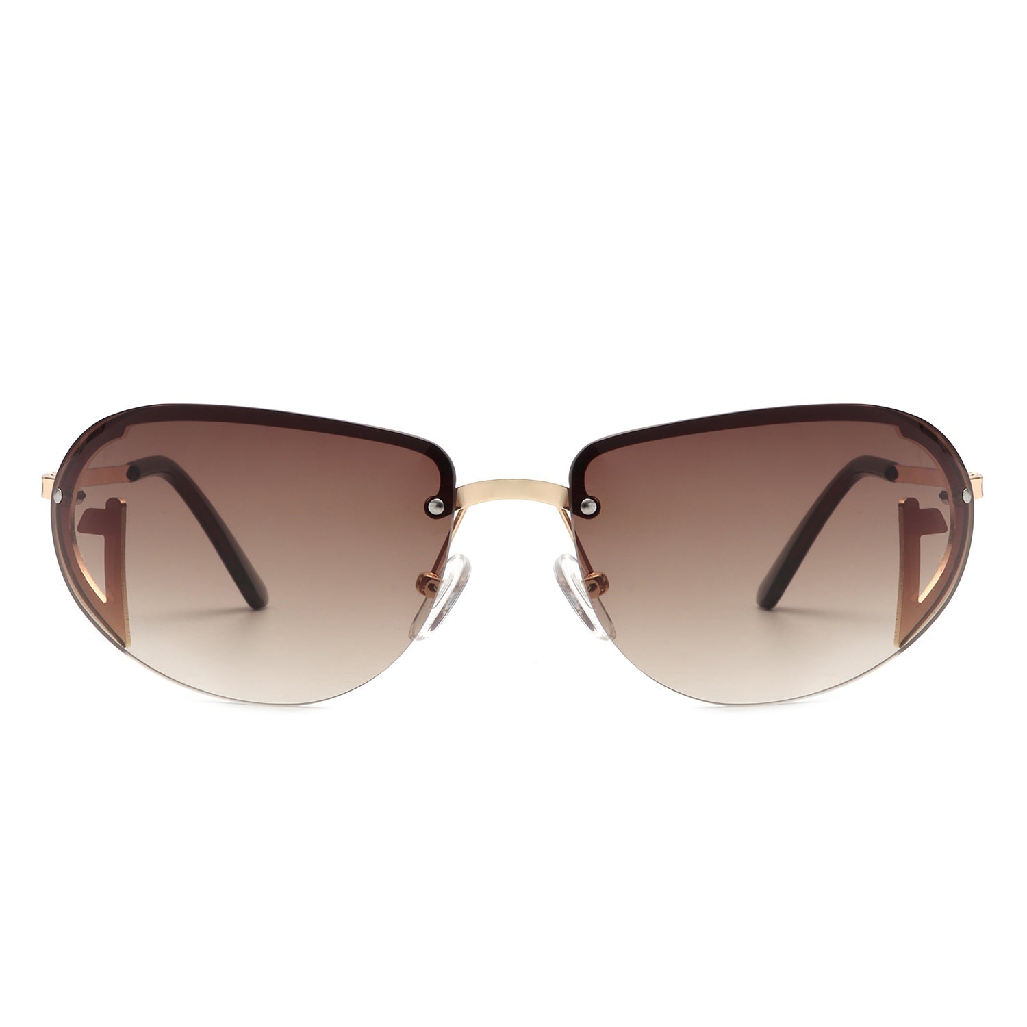 Oceandew - Retro Rimless Oval Tinted Fashion Round Sunglasses