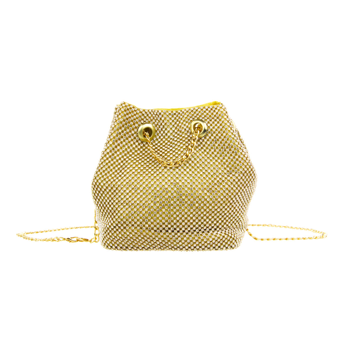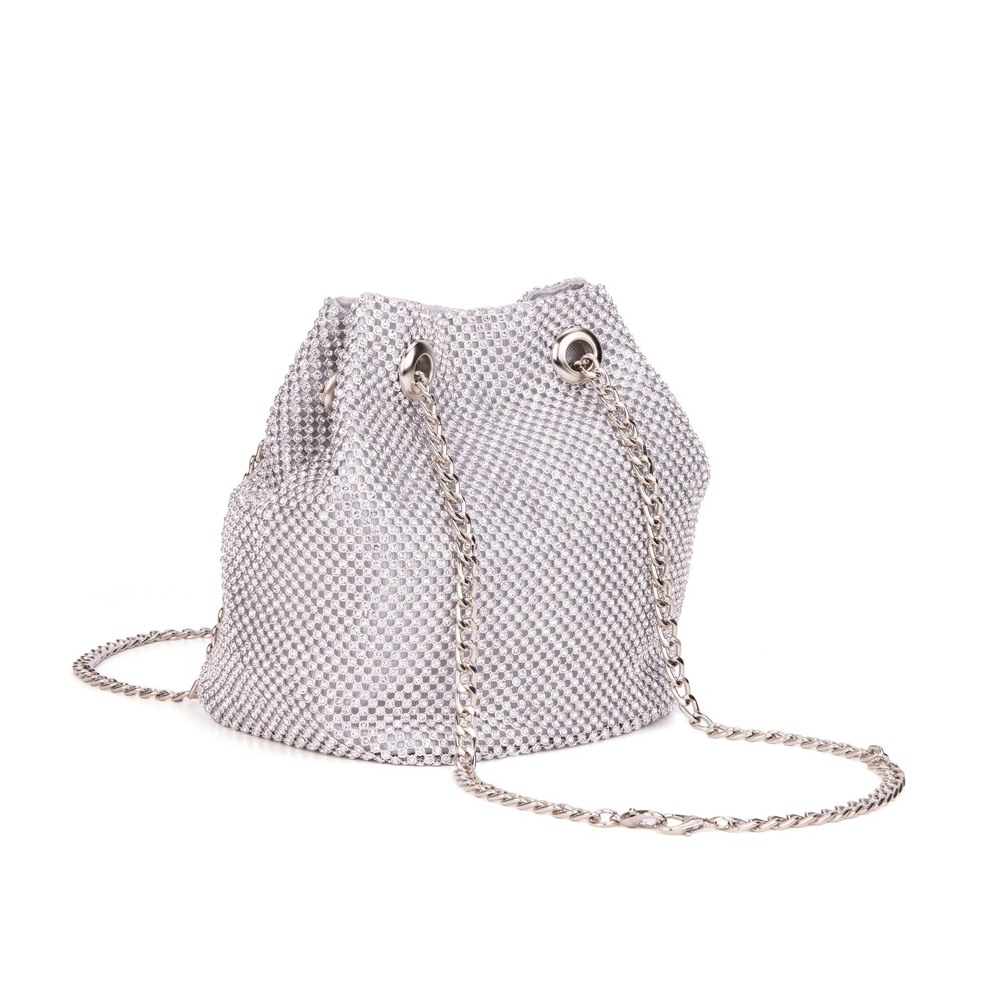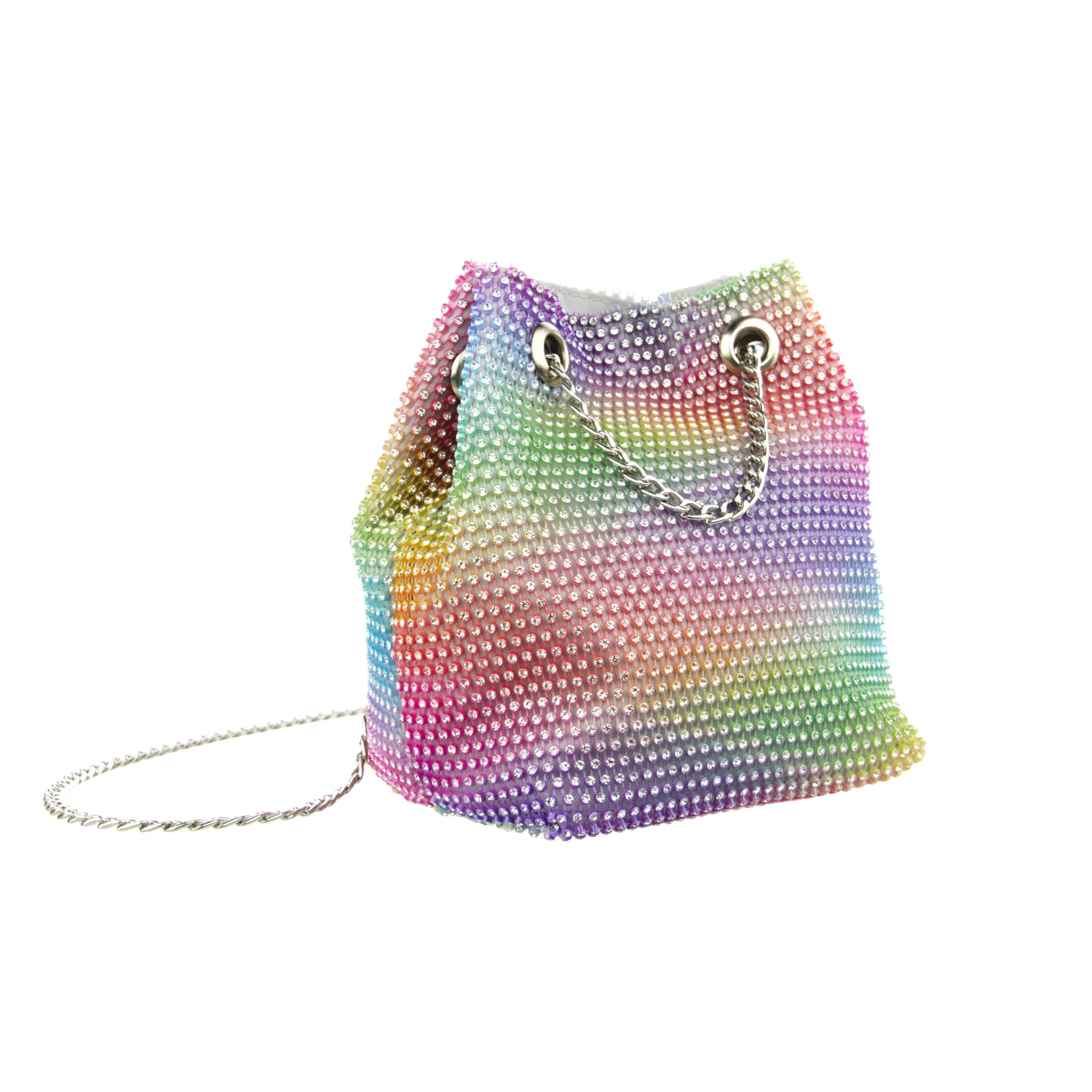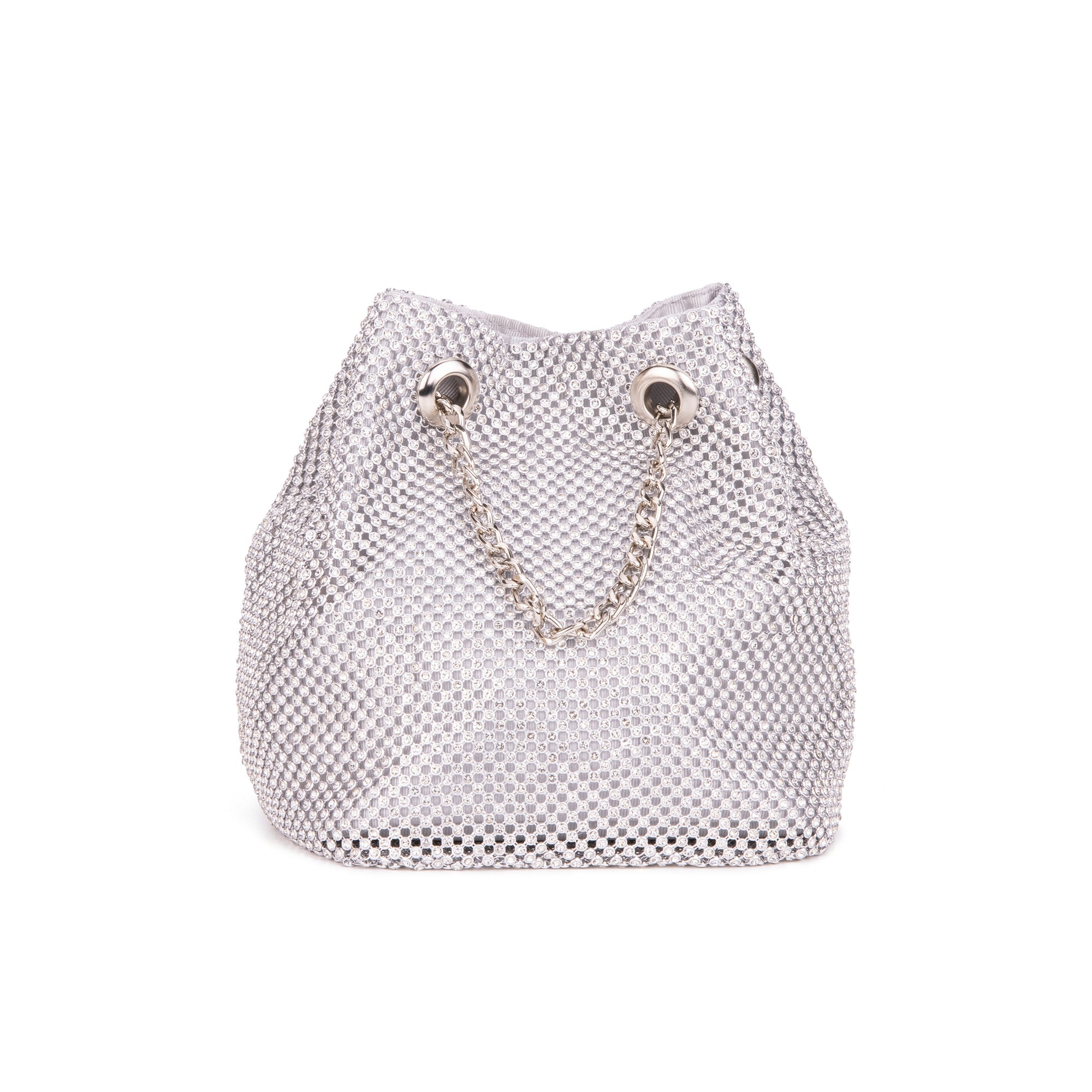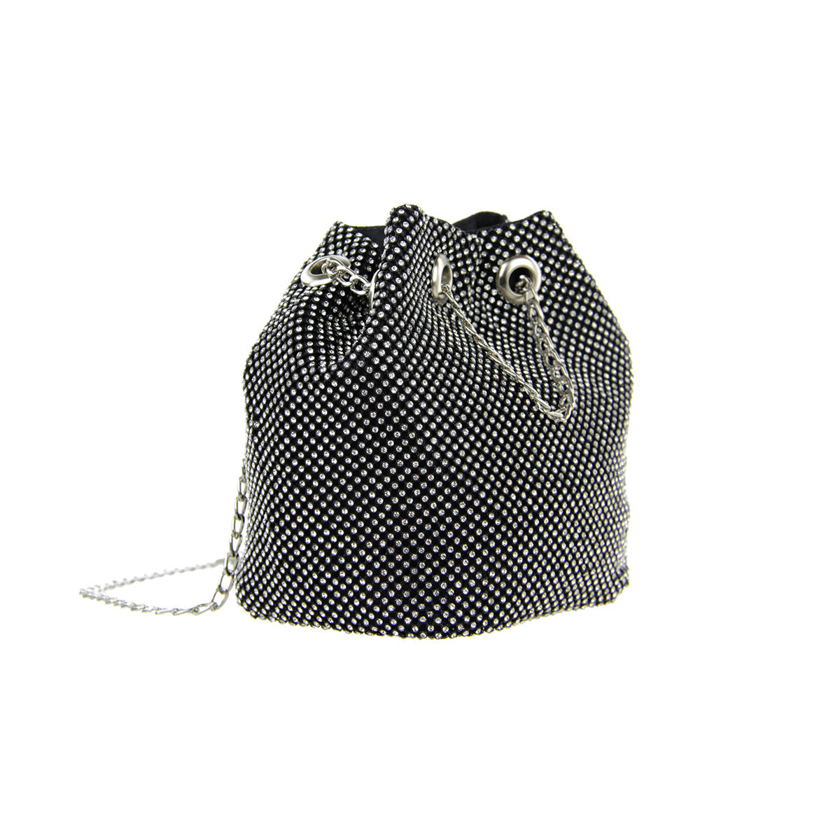 The Cami Phone Crossbody is perfect for an night out! Can fit an iPhone 11Pro Max, as seen in top view photo. The Cami features mesh rhinestones all over, chain strap, and magnetic snap.