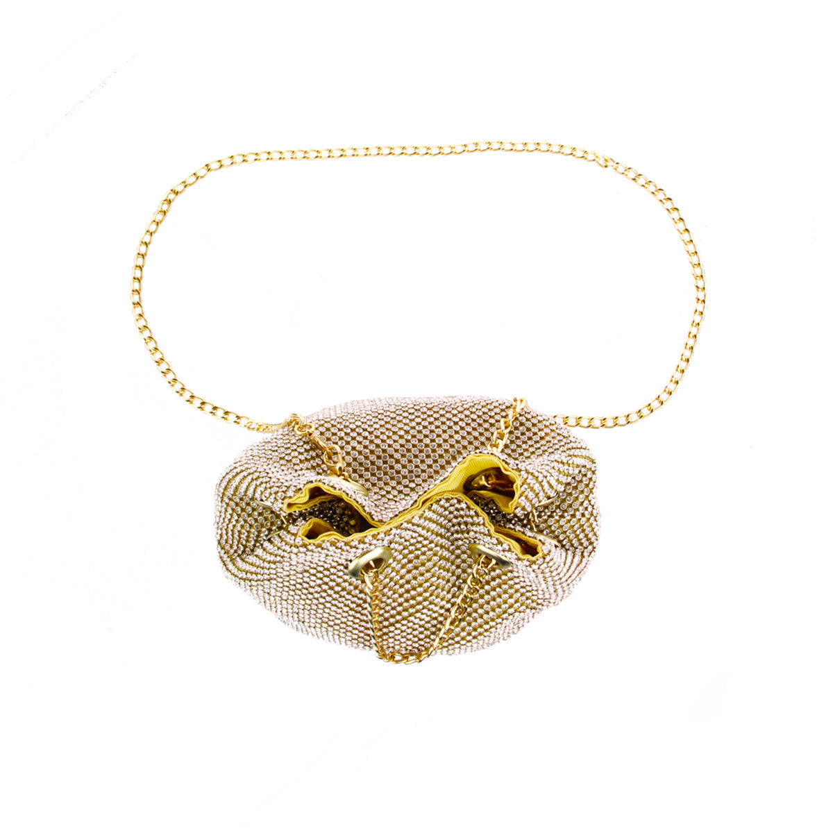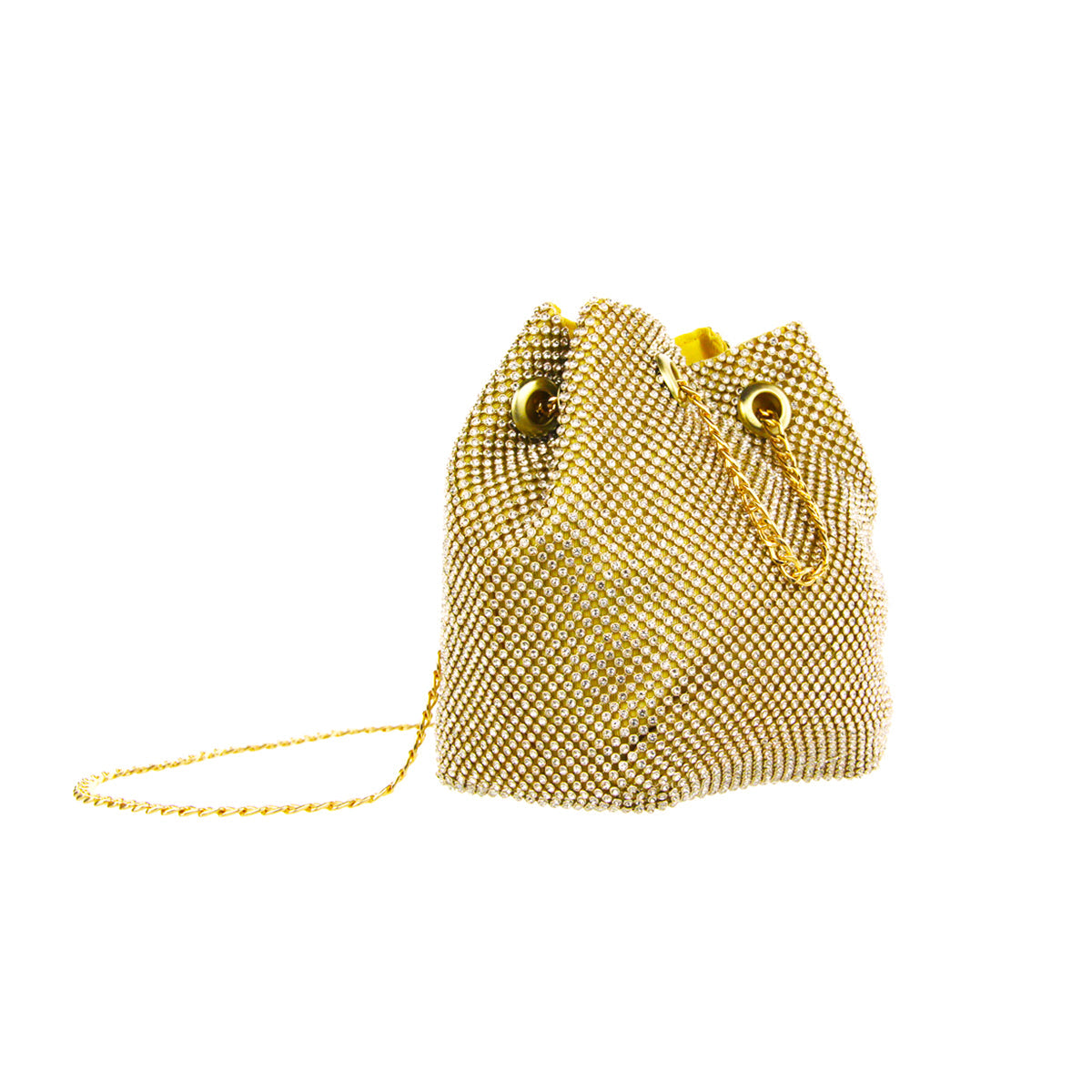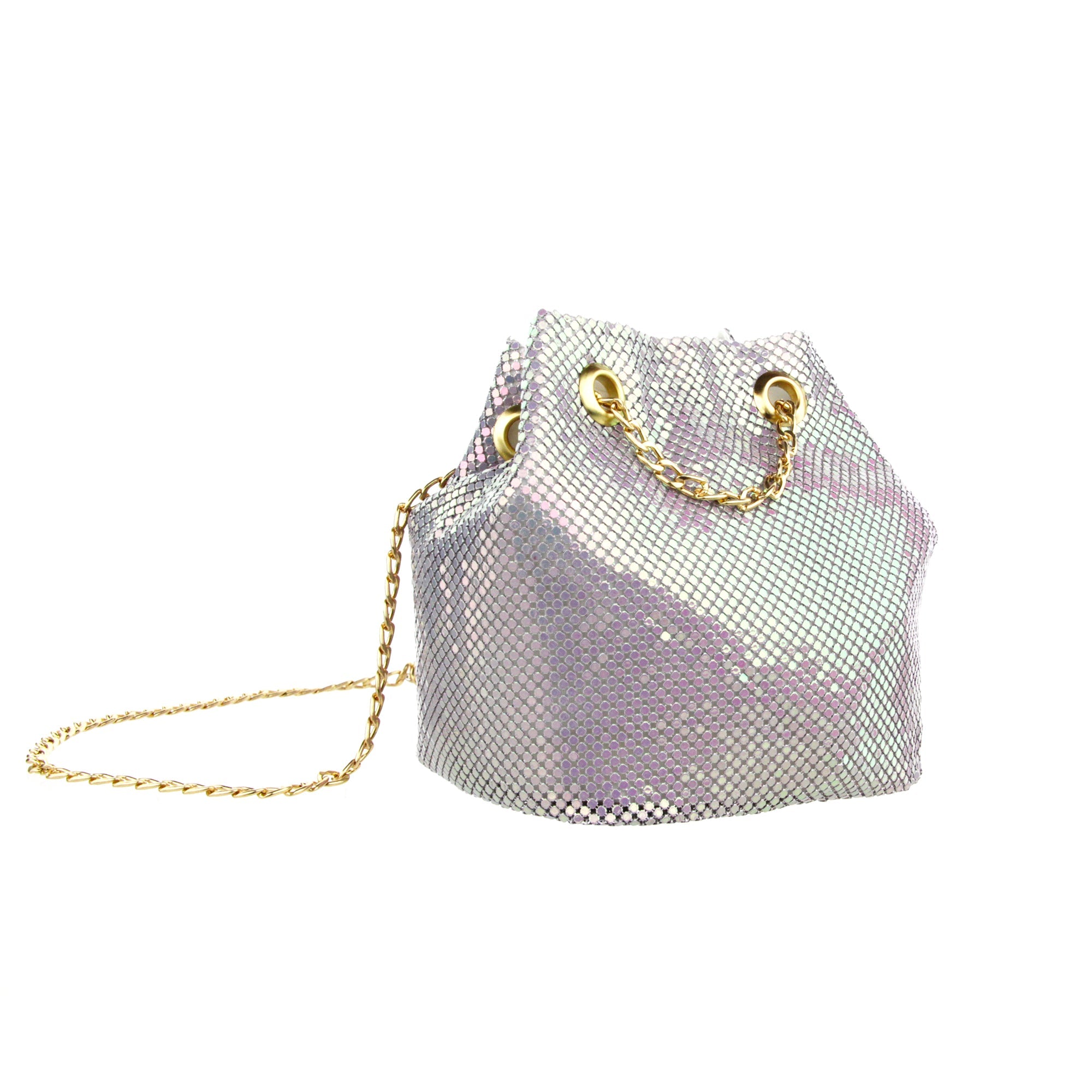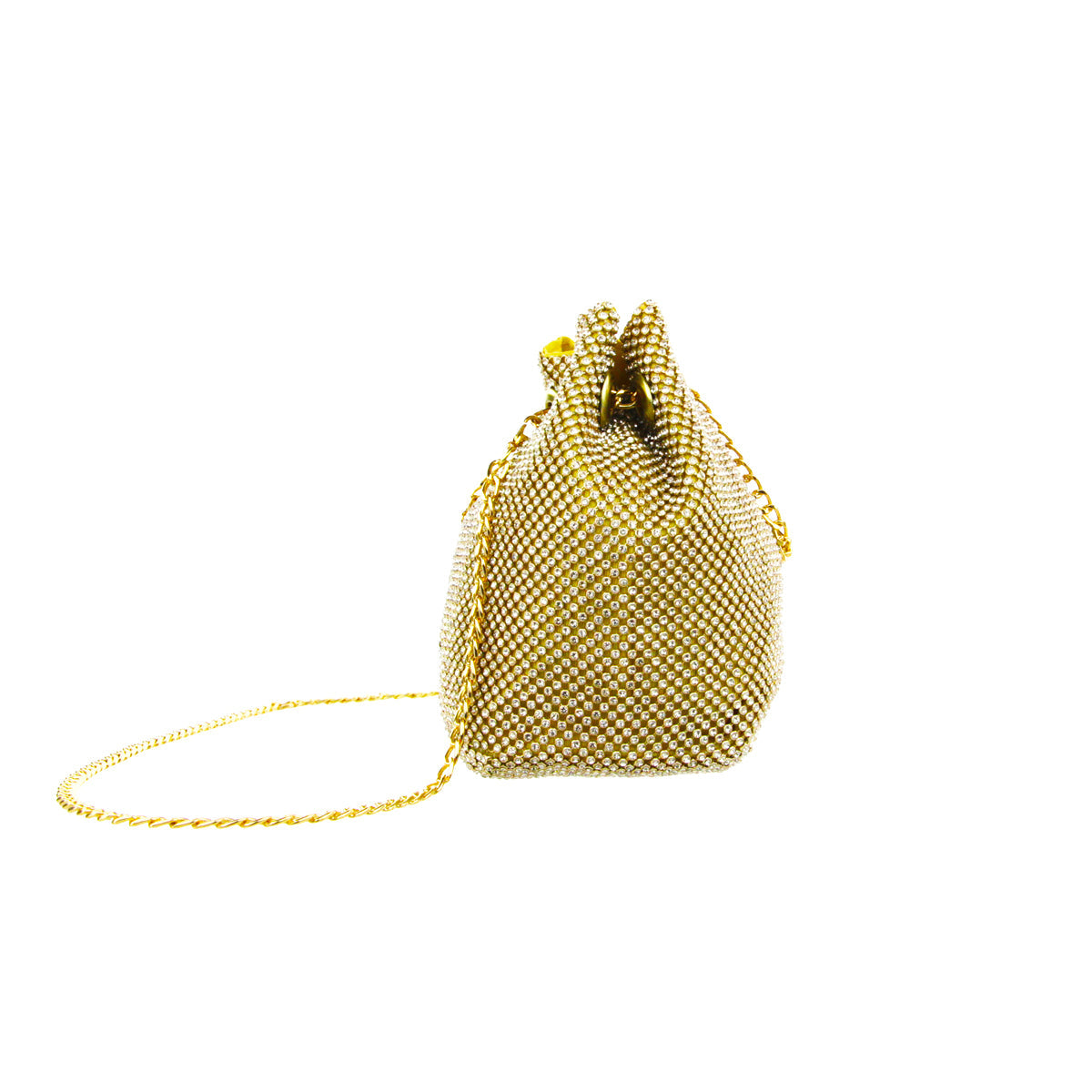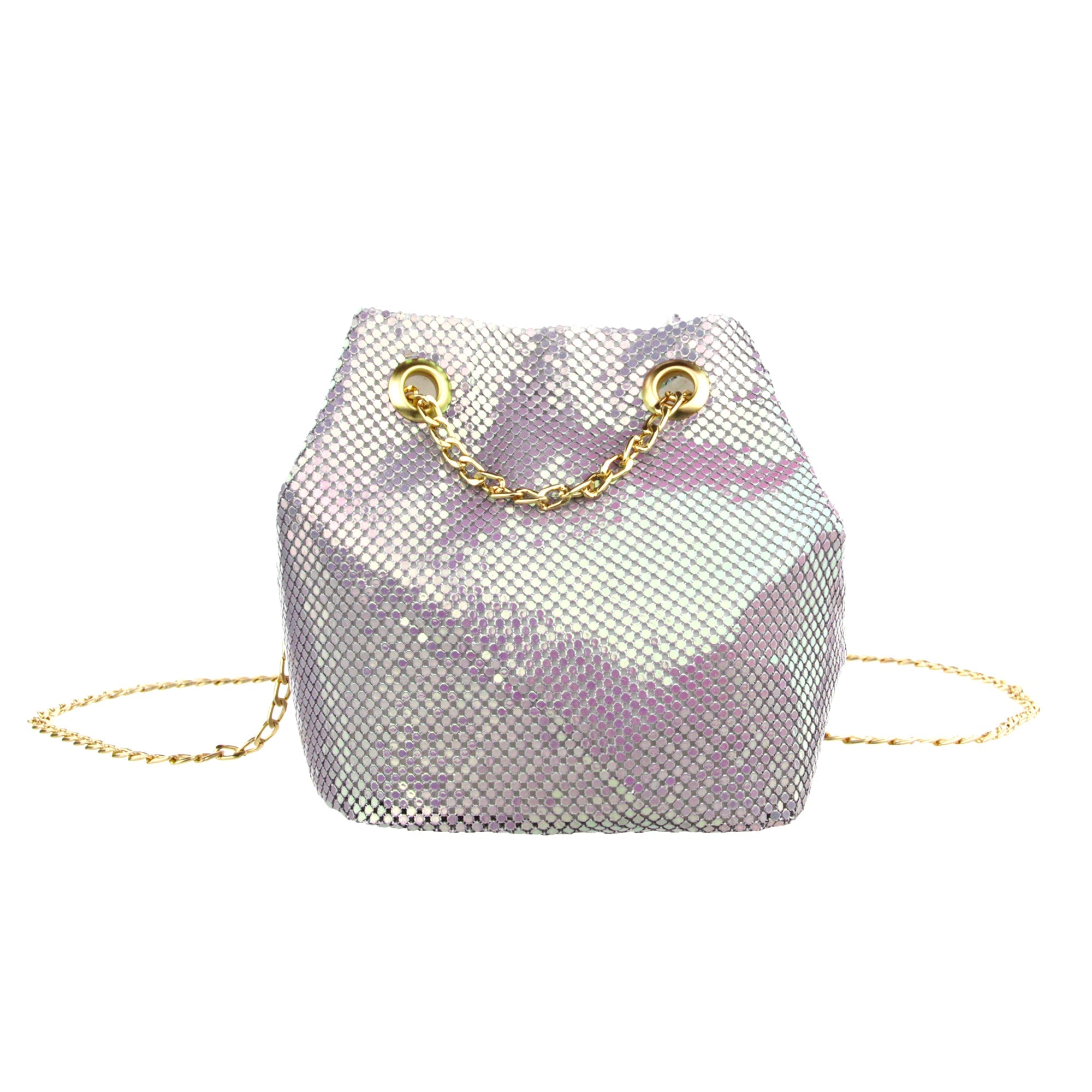 The Cami Phone Crossbody is perfect for an night out! Can fit an iPhone 11Pro Max, as seen in top view photo. The Cami features mesh rhinestones all over, chain strap, and magnetic snap.