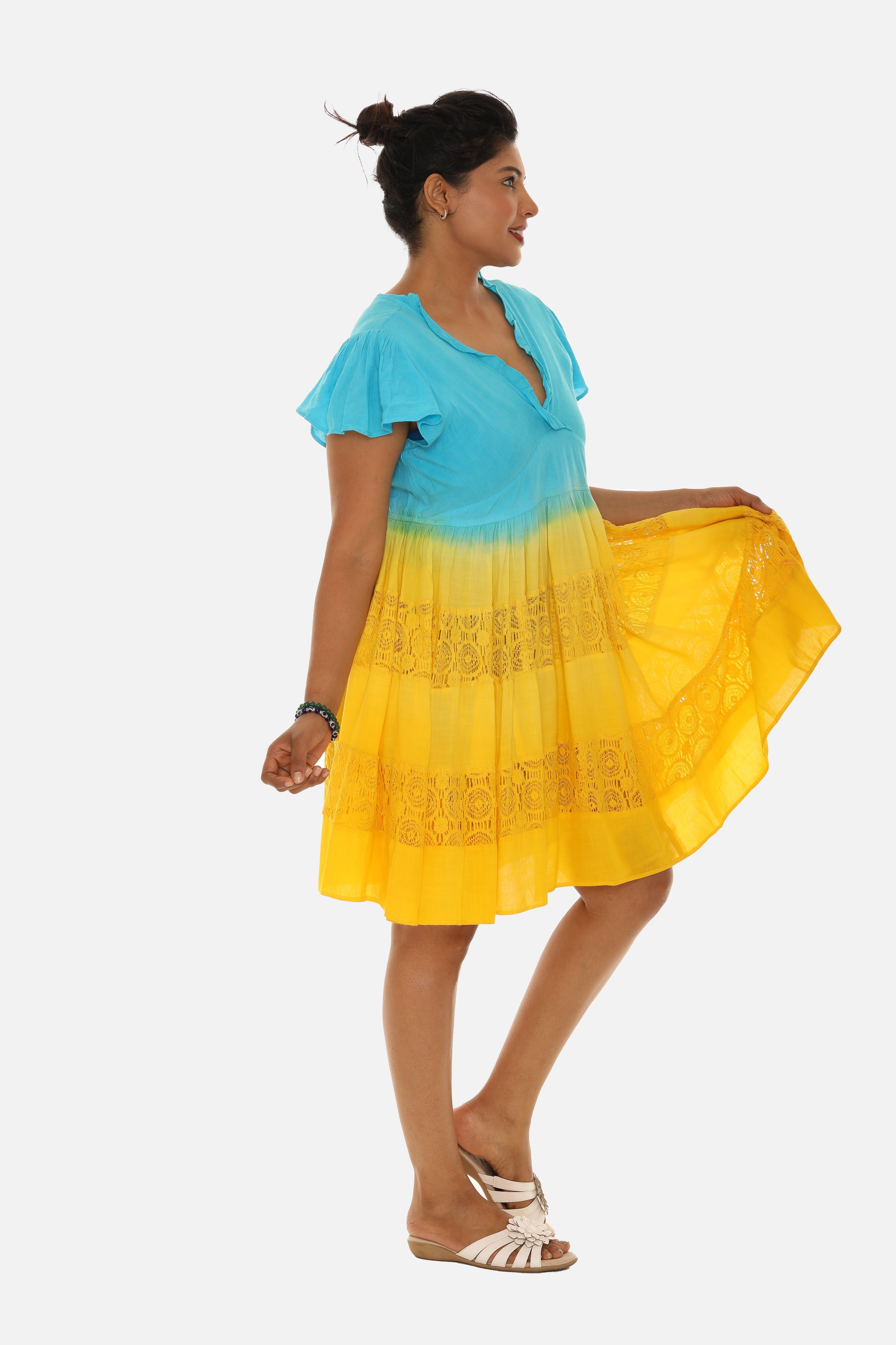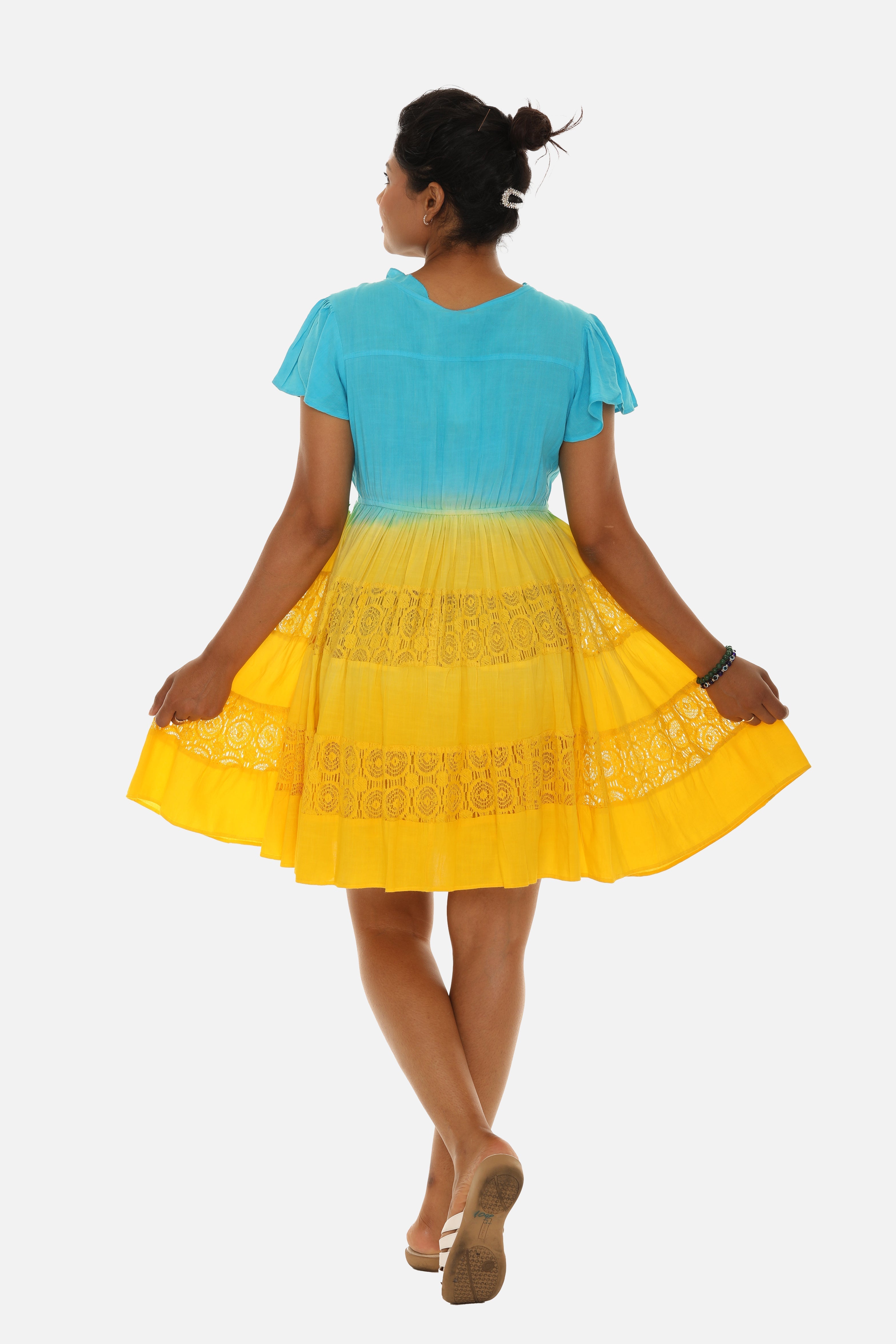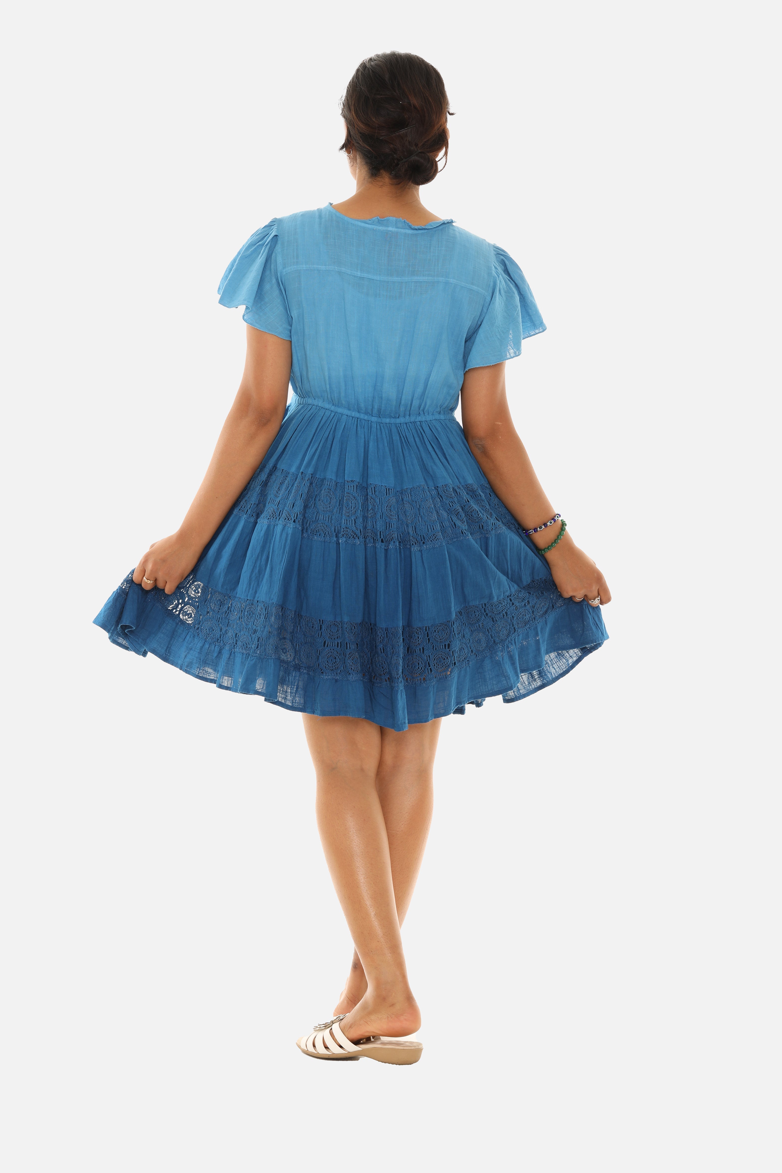 Ombré Lace Flutter-Sleeve Empire-Waist Dress