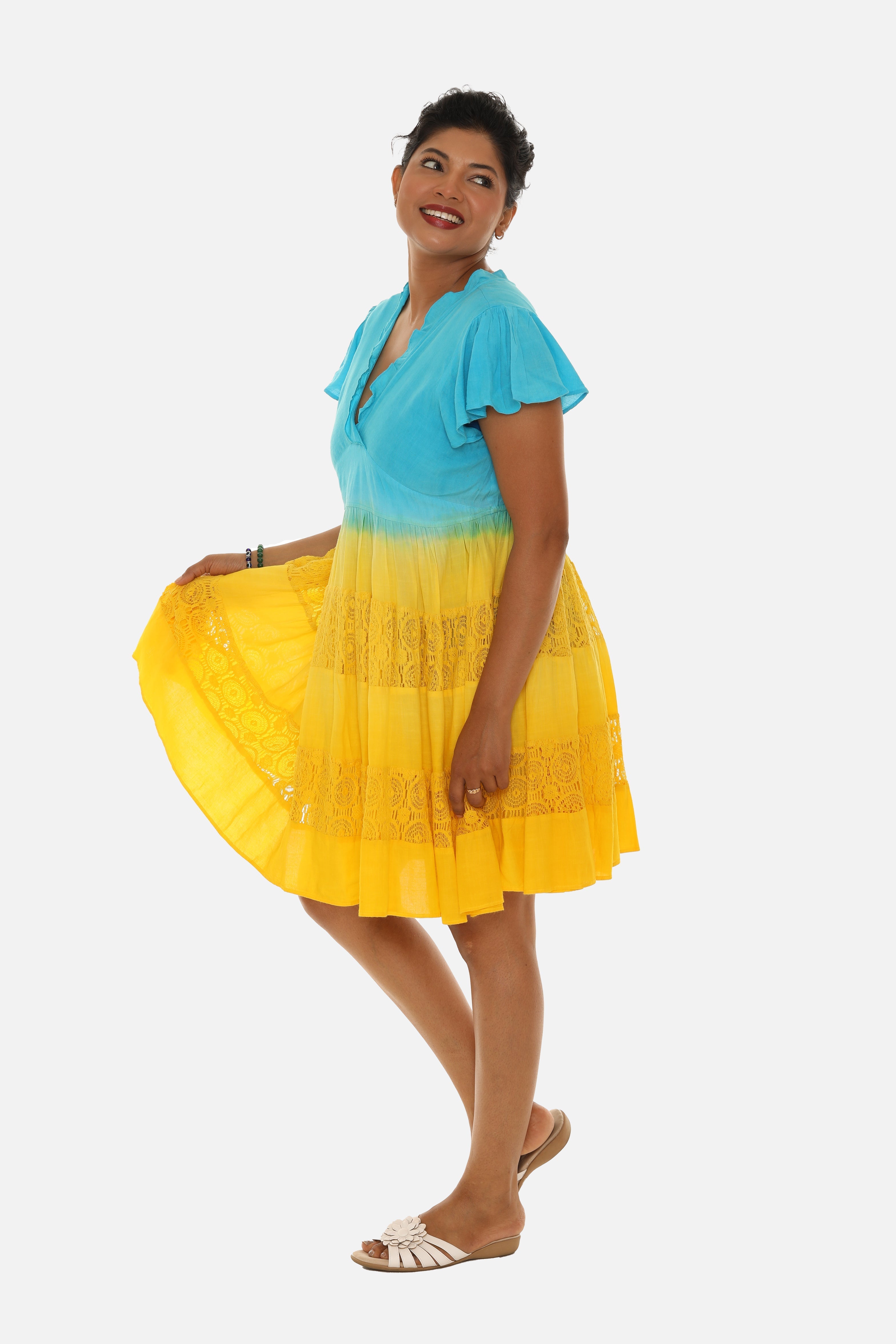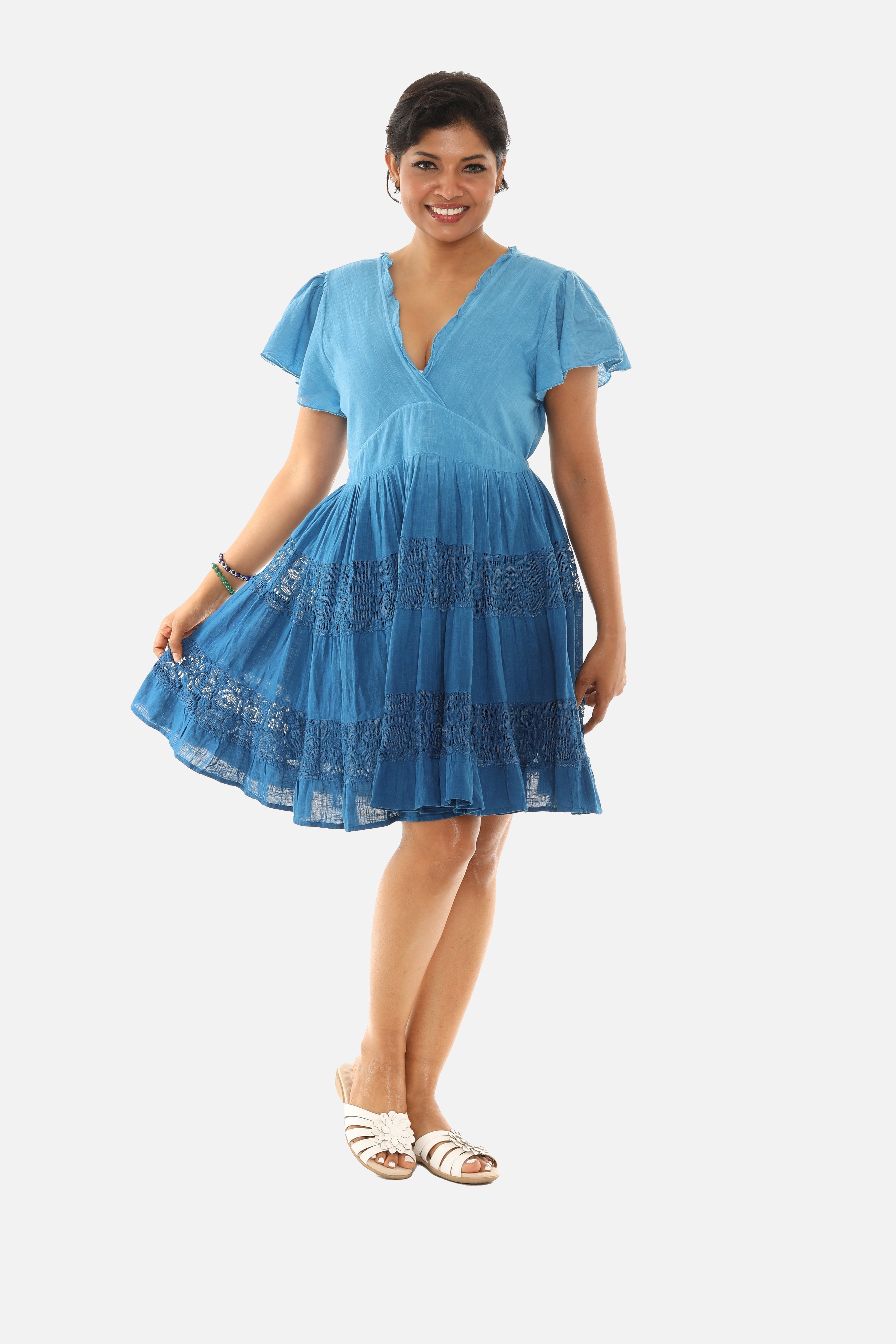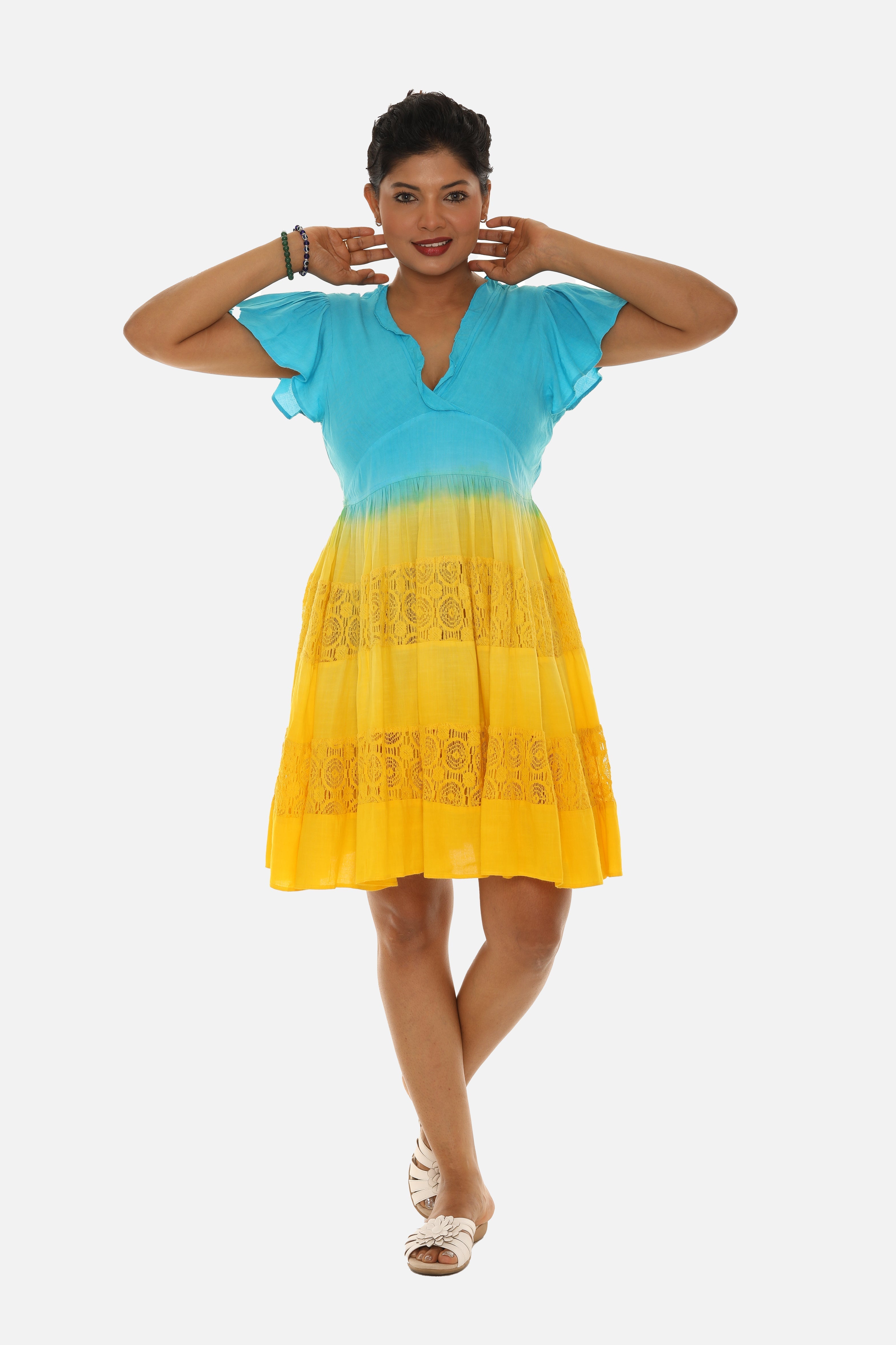 Ombré Lace Flutter-Sleeve Empire-Waist Dress